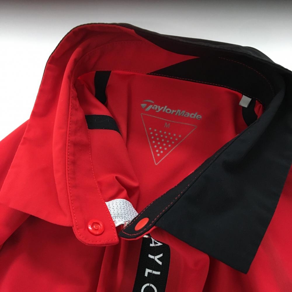【美品】テーラーメイド 長袖ポロシャツ レッド×黒 ハーフジップ ファスナー部ロゴ レディース M ゴルフウェア TaylorMade