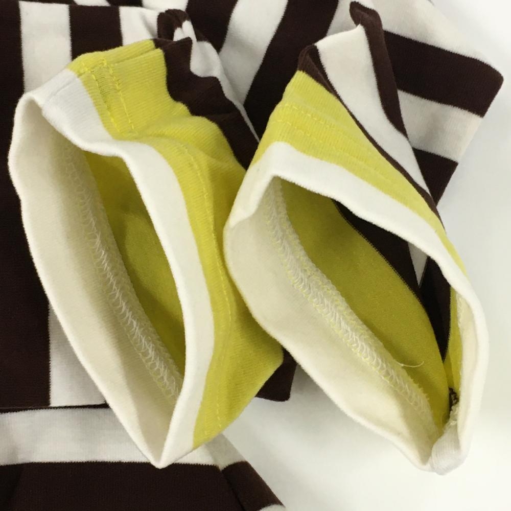 【美品】アダバット 長袖ハイネックシャツ ブラウン×白 ボーダー レディース 40(L) ゴルフウェア adabat