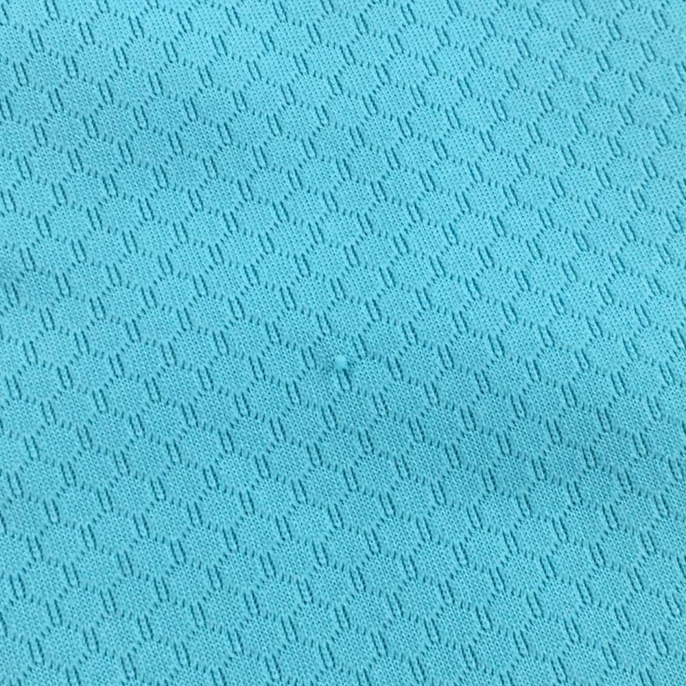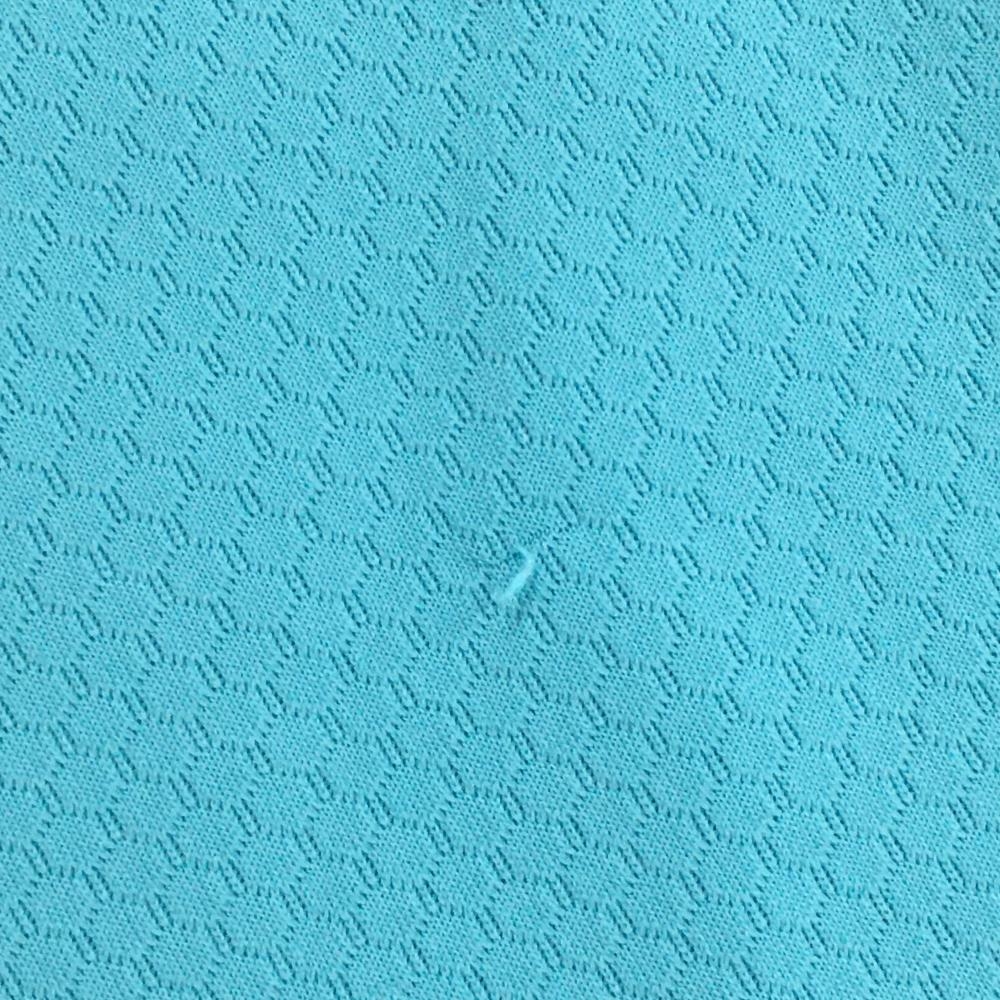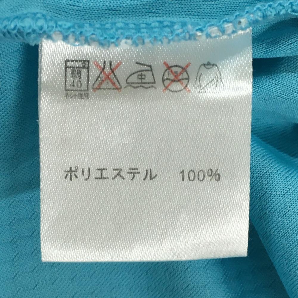 マリクレールスポール 半袖ハイネックシャツ ライトブルー×白 織生地 フロントロゴ レディース L ゴルフウェア marie claire