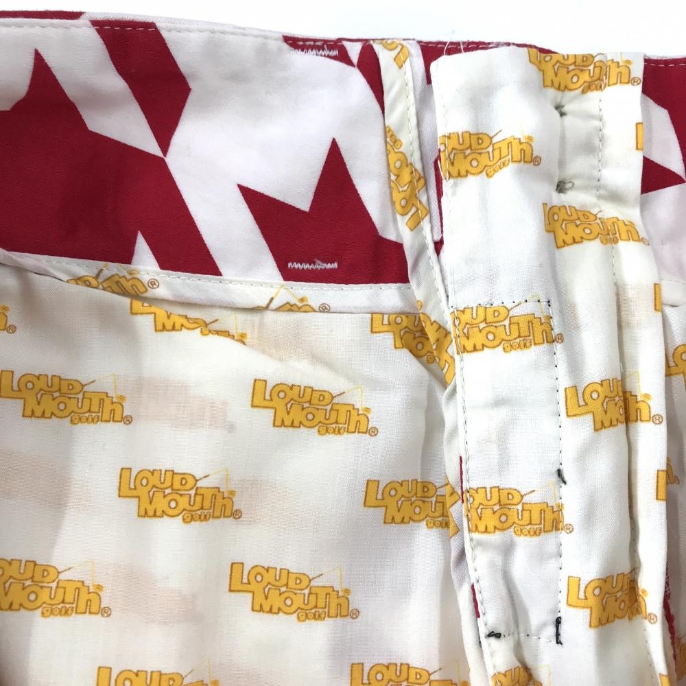 【美品】ラウドマウス パンツ レッド×白 千鳥格子 ストレッチ オークモントハウンドトゥース メンズ 34×30L ゴルフウェア LOUDMOUTH
