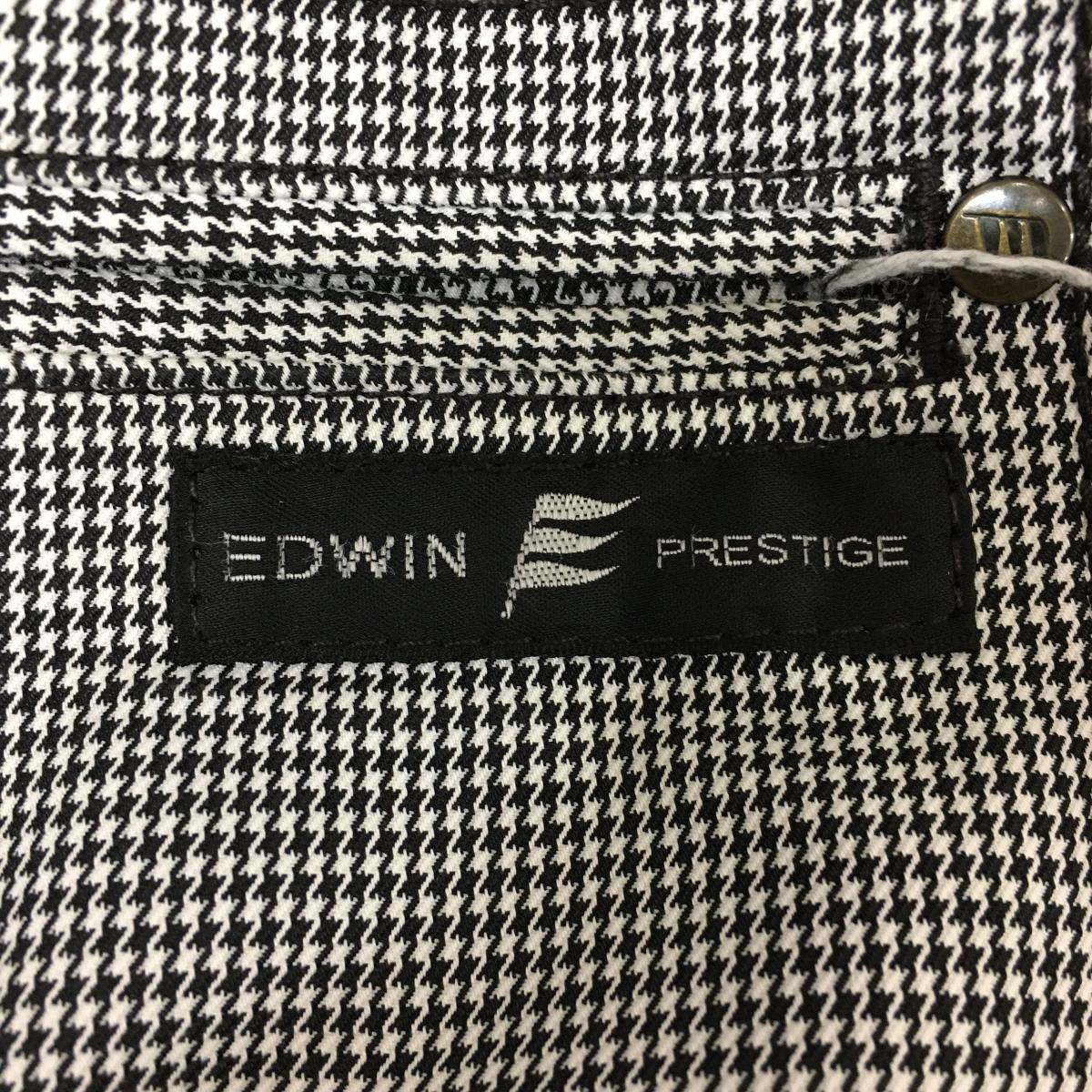 【美品】エドウィンPRESTIGE パンツ 黒×白 細目千鳥格子 ウエスト調節可 ストレッチ メンズ L ゴルフウェア EDWIN GOLF