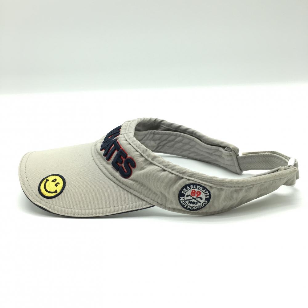 パーリーゲイツ サンバイザー グレー×ネイビー ニコちゃん スマイル 立体刺しゅう ゴルフウェア PEARLY GATES