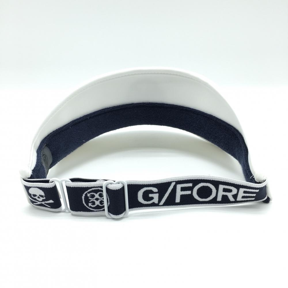 【未使用品】ジーフォア サンバイザー 白×ネイビー ロゴ刺しゅう 後ろゴム ゴルフウェア G/FORE