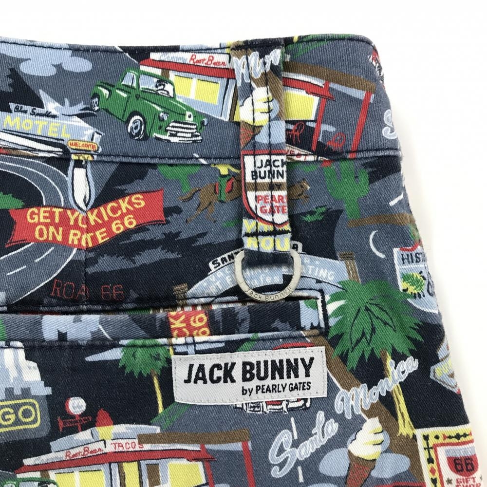 【美品】ジャックバニー ショートパンツ グレー×マルチカラー 総柄 クルマ レディース 1(M) ゴルフウェア Jack Bunny