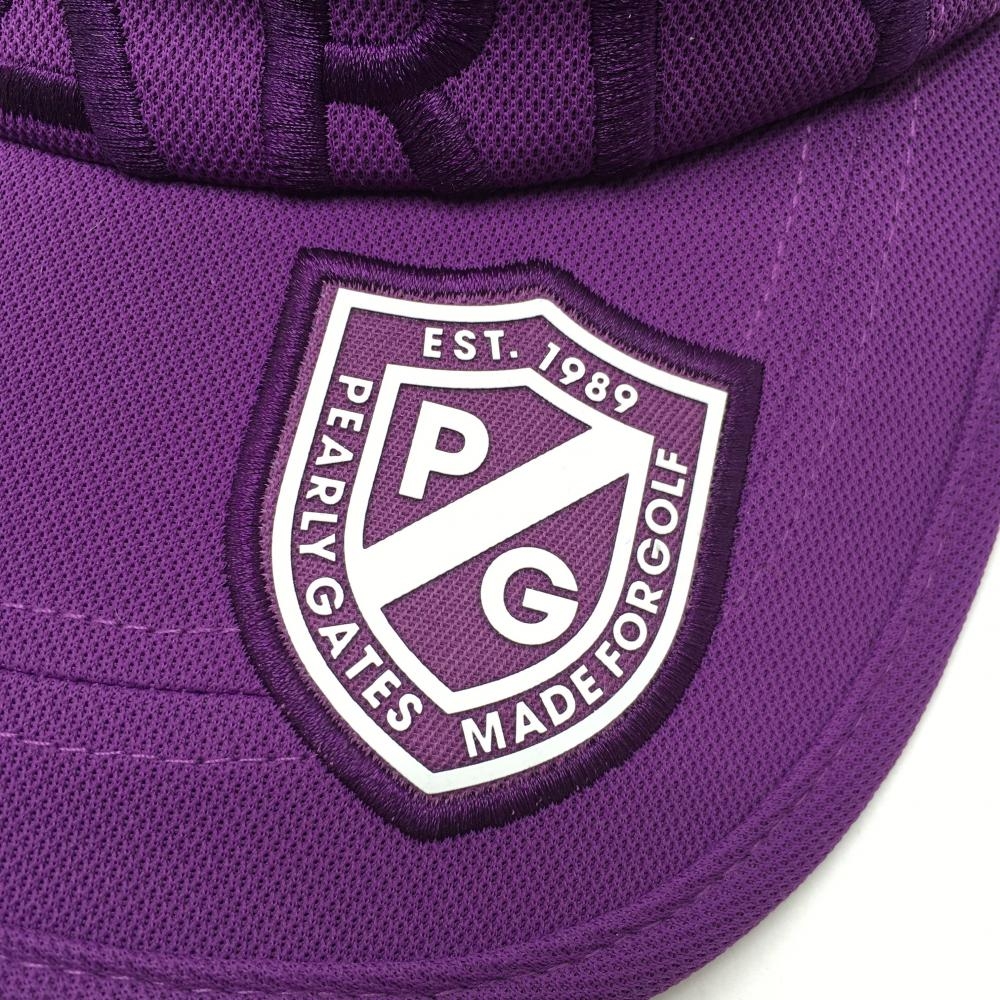 【超美品】パーリーゲイツ サンバイザー パープル×白 ロゴ刺しゅう 内側キルティング ゴルフウェア PEARLY GATES