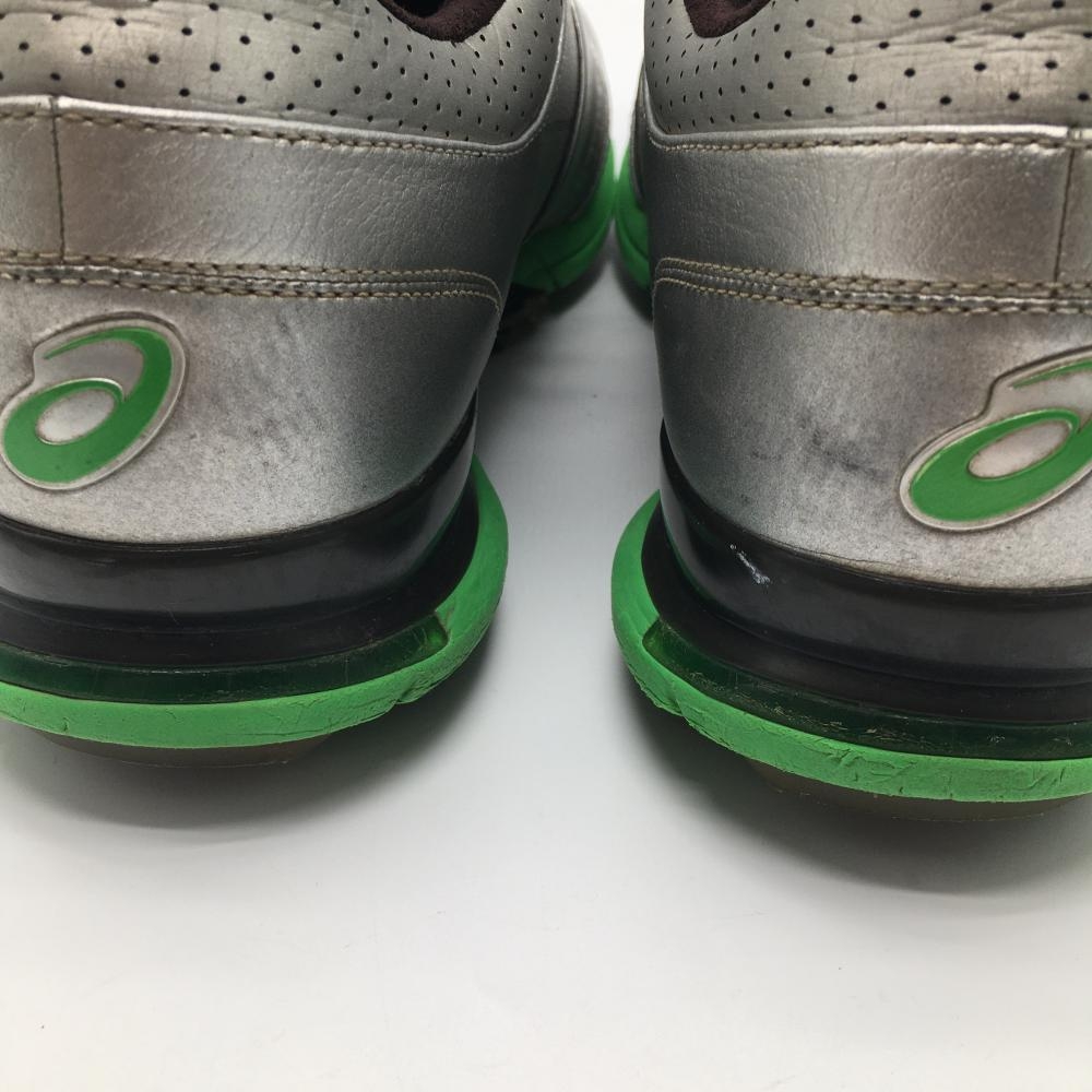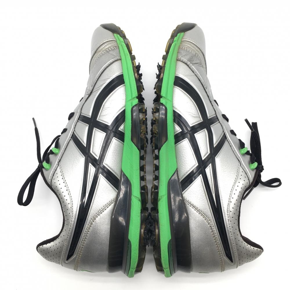 【美品】アシックス ゴルフシューズ シルバー×黒×グリーン TGN908 ゲルエースプロ FG-RF メンズ 26.5 ゴルフウェア asics