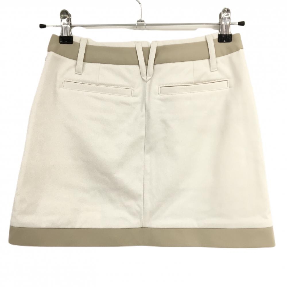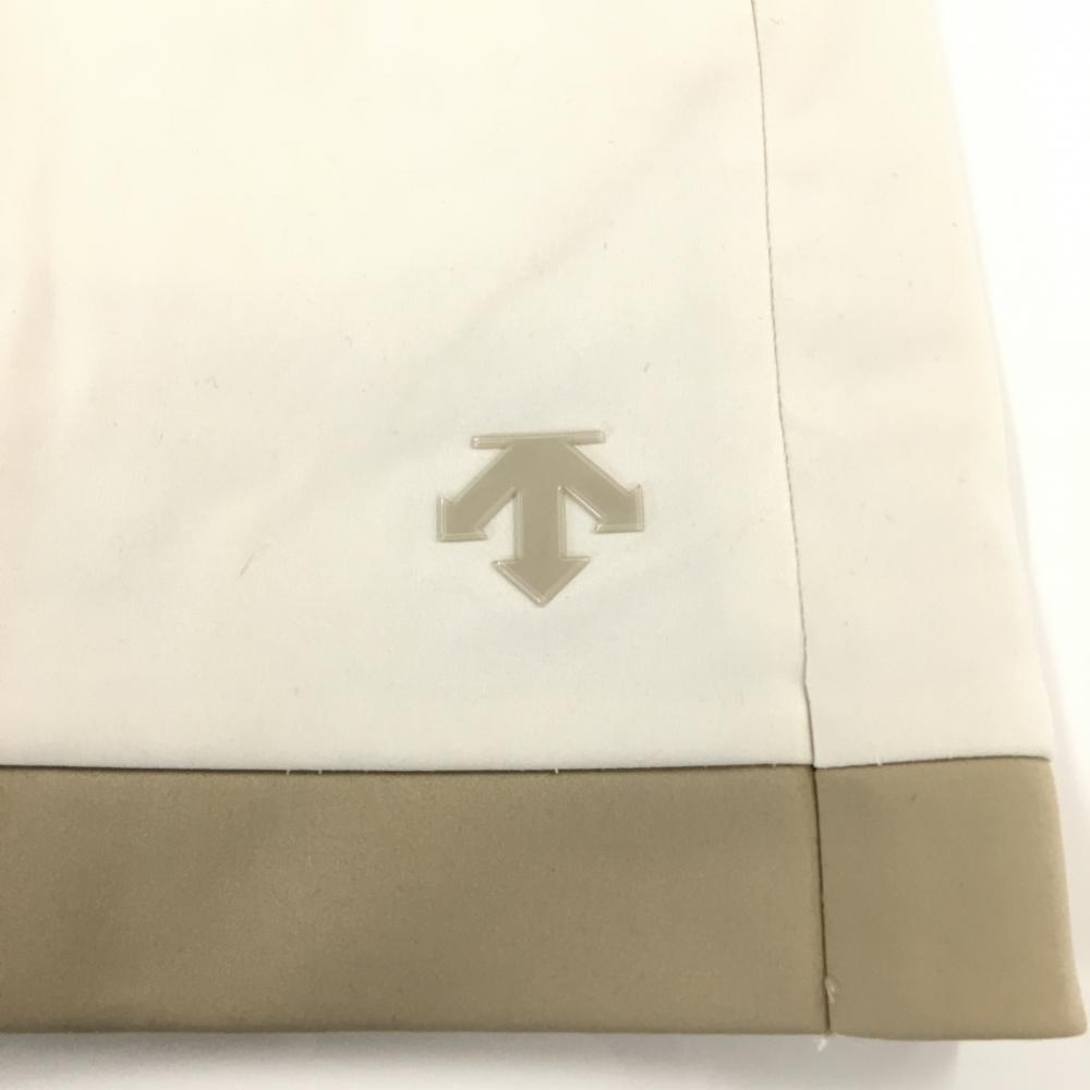 【美品】デサントゴルフ スカート 白×ベージュ バイカラー 裾ロゴ 裏微起毛 中田英寿 レディース 58/SS ゴルフウェア DESCENTE