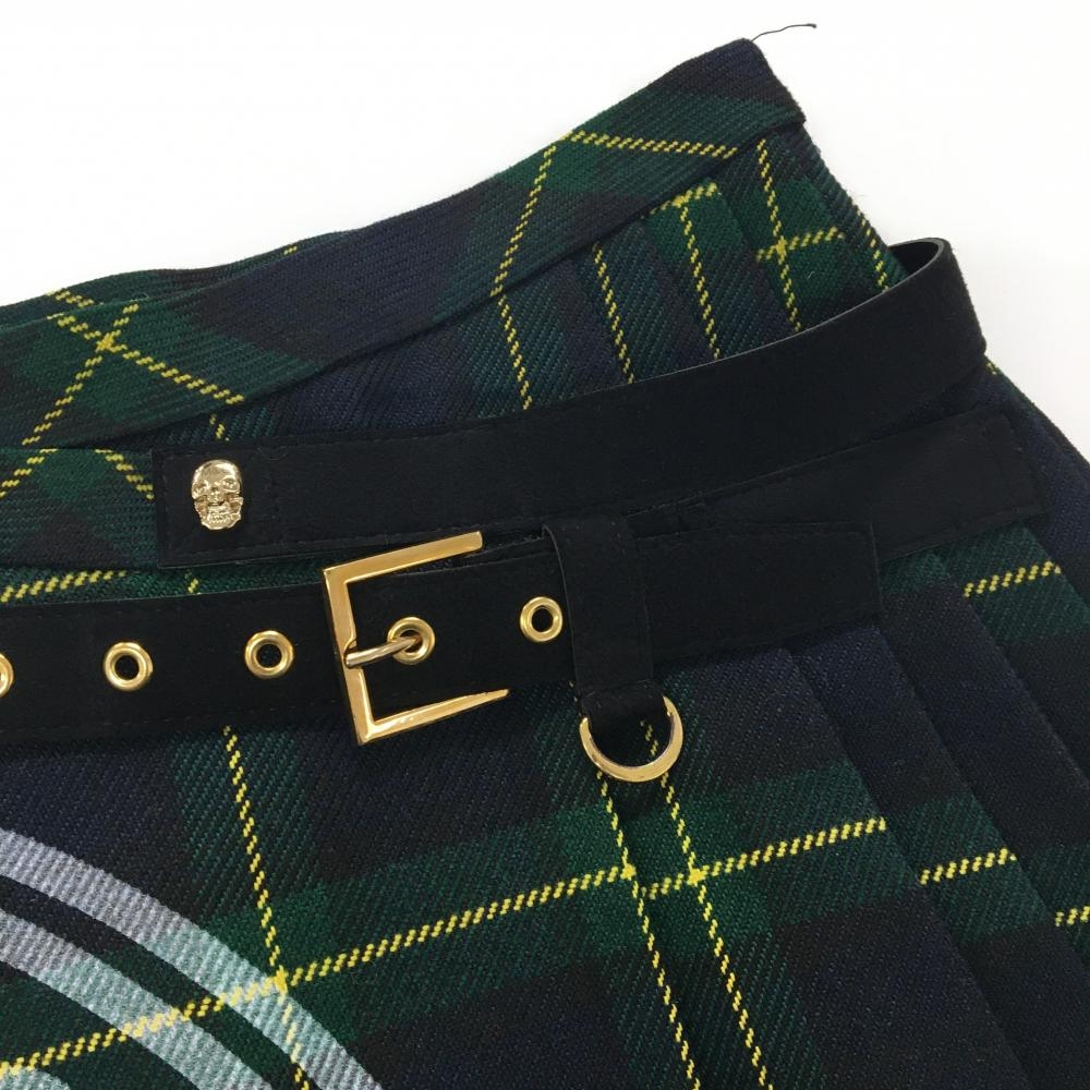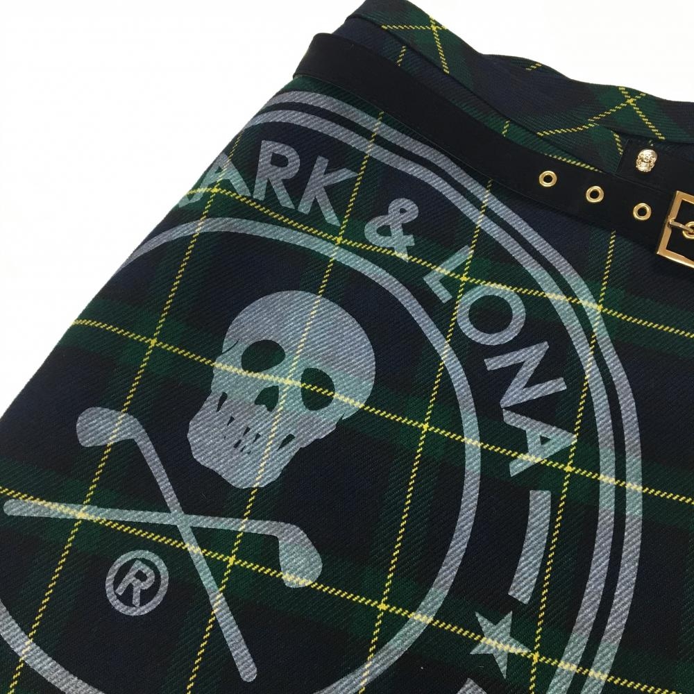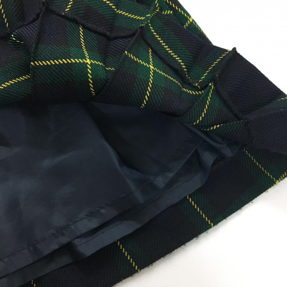 【美品】マークアンドロナ スカート グリーン×黒×イエロー チェック 一部プリーツ レディース 36(S) ゴルフウェア MARK&LONA