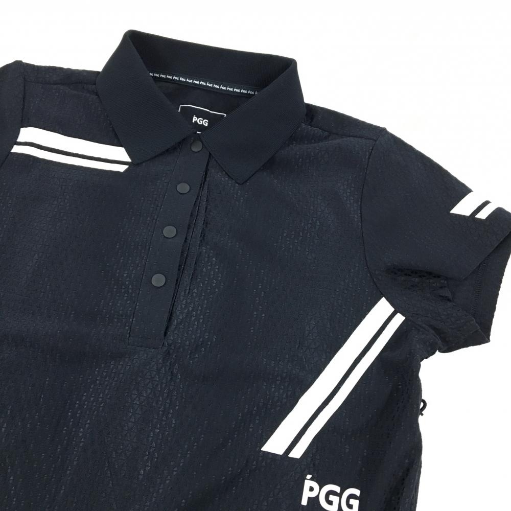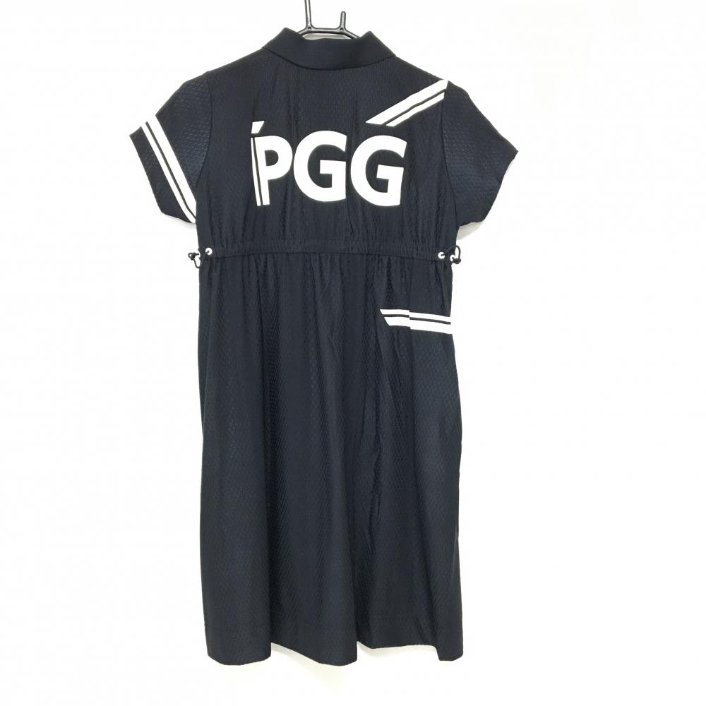 【超美品】PGGパーリーゲイツ 半袖ポロワンピース 黒×白 織生地 ドローコード レディース 0(S) ゴルフウェア 2024年モデル PEARLY GATES
