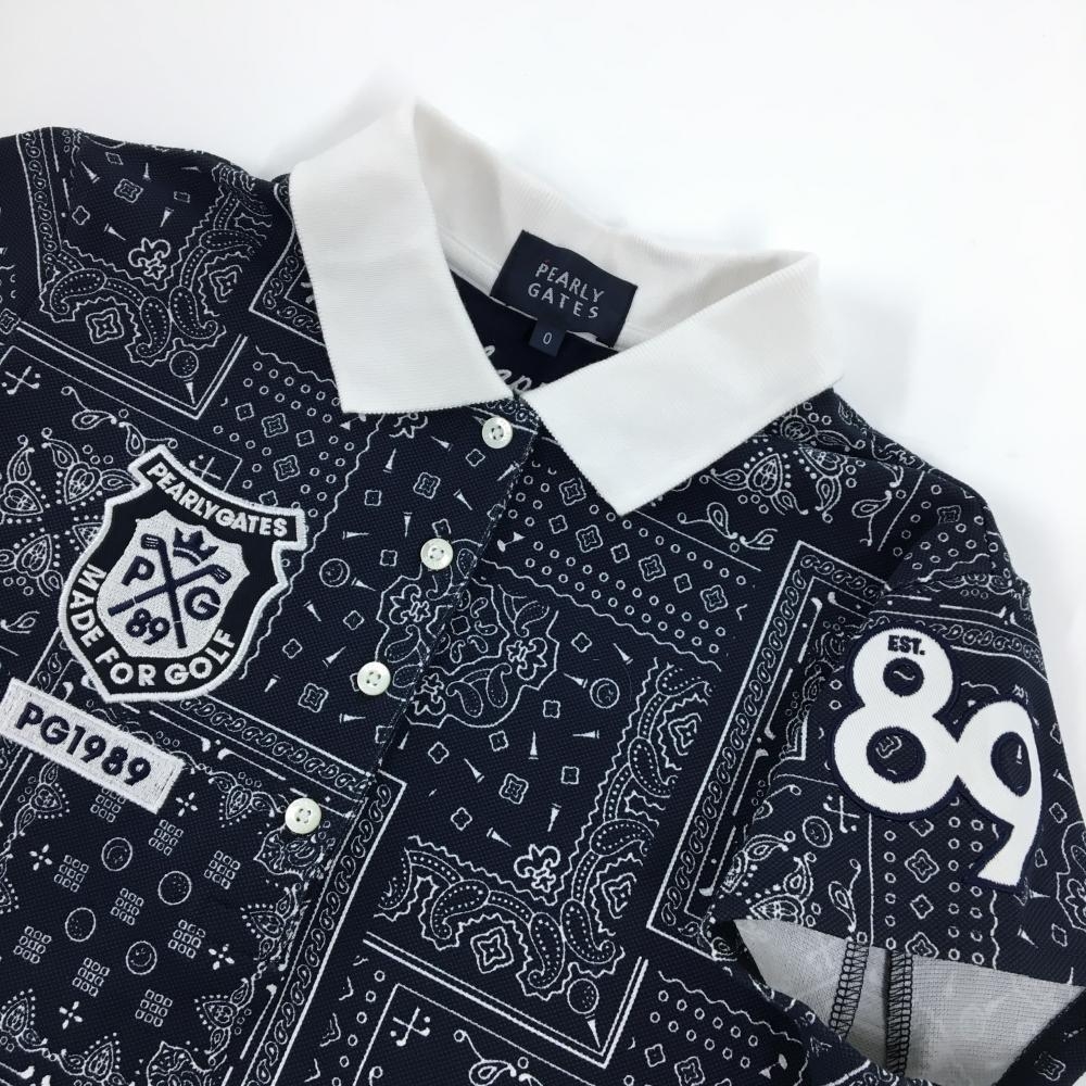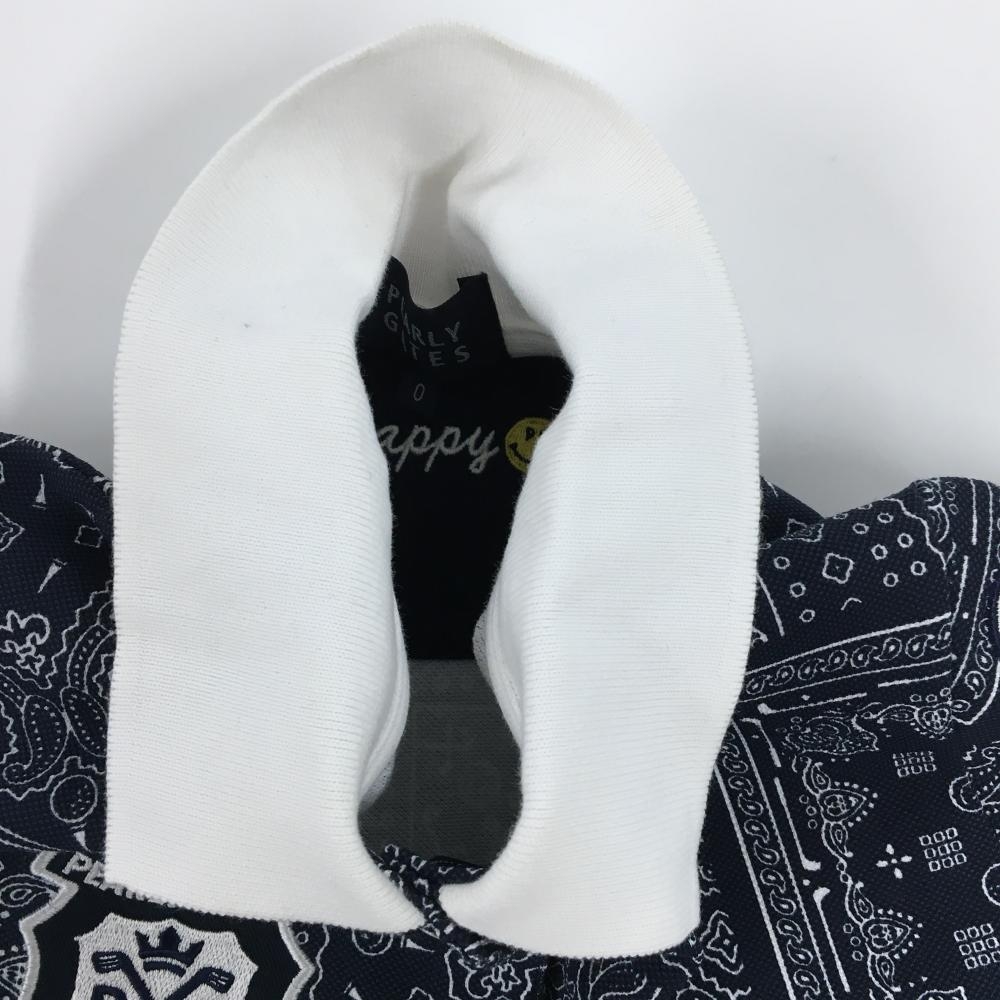 【美品】パーリーゲイツ 半袖ポロワンピース ネイビー×白 総柄 内側ニコちゃん レディース 0(S) ゴルフウェア PEARLY GATES