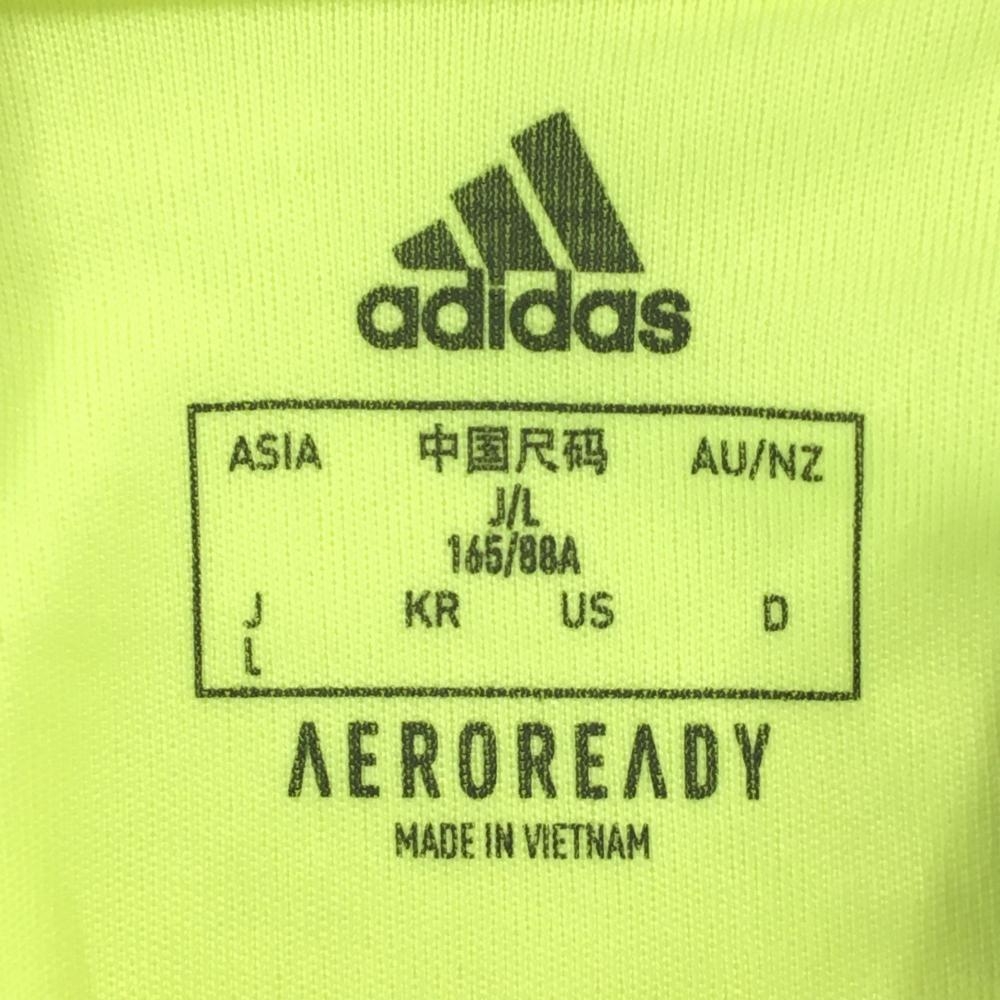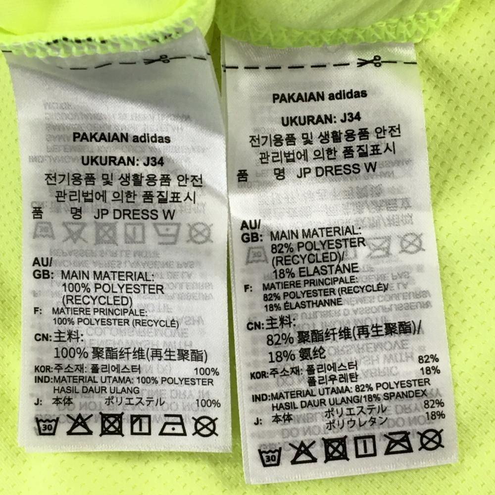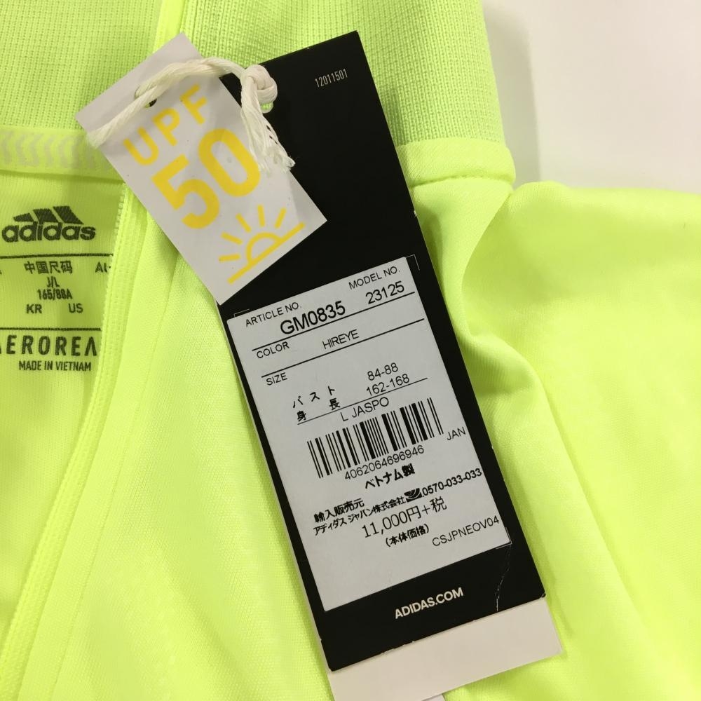 【新品】アディダス 半袖ハイネックワンピース 蛍光イエロー 総柄地模様 サイド3ライン レディース L ゴルフウェア adidas