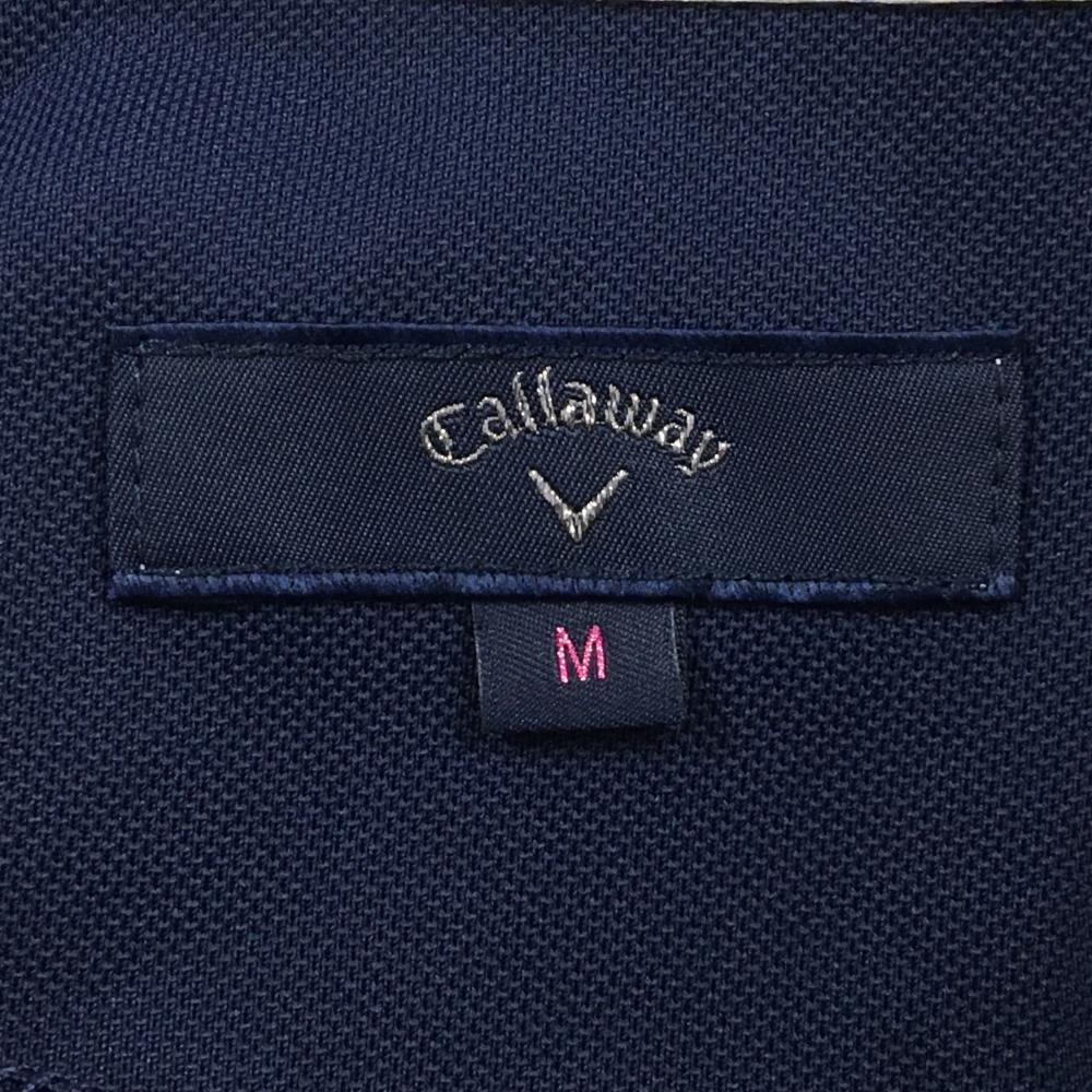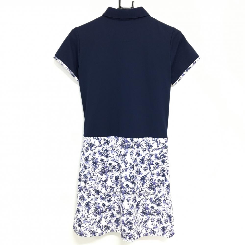 【美品】キャロウェイ 半袖ポロワンピース ネイビー×白 スカート部花柄 ベルト風 レディース M ゴルフウェア Callaway