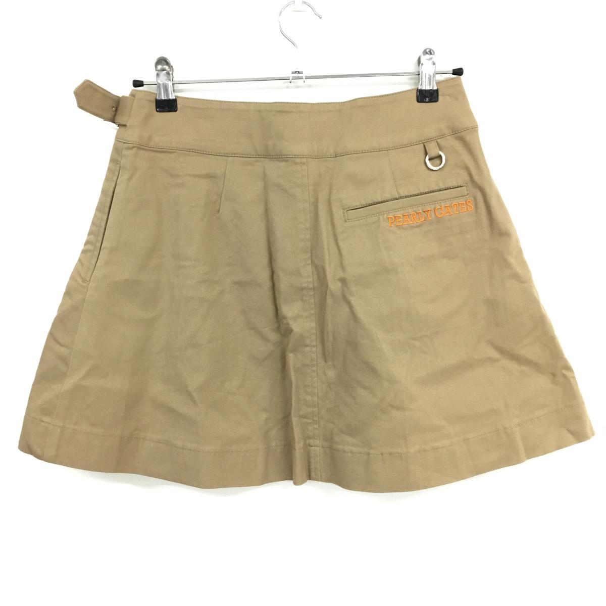 【超美品】パーリーゲイツ スカート ライトブラウン ポケット口ロゴ刺しゅう コットン混 レディース 2(L) ゴルフウェア PEARLY GATES
