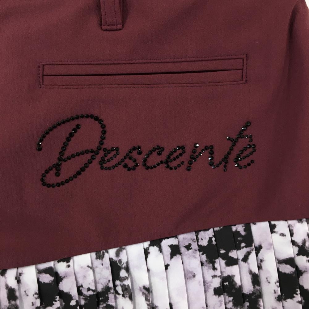 【超美品】デサントゴルフ スカート ボルドー×白×黒 LUXE COLLECTION 裾柄 レディース 58/SS ゴルフウェア DESCENTE