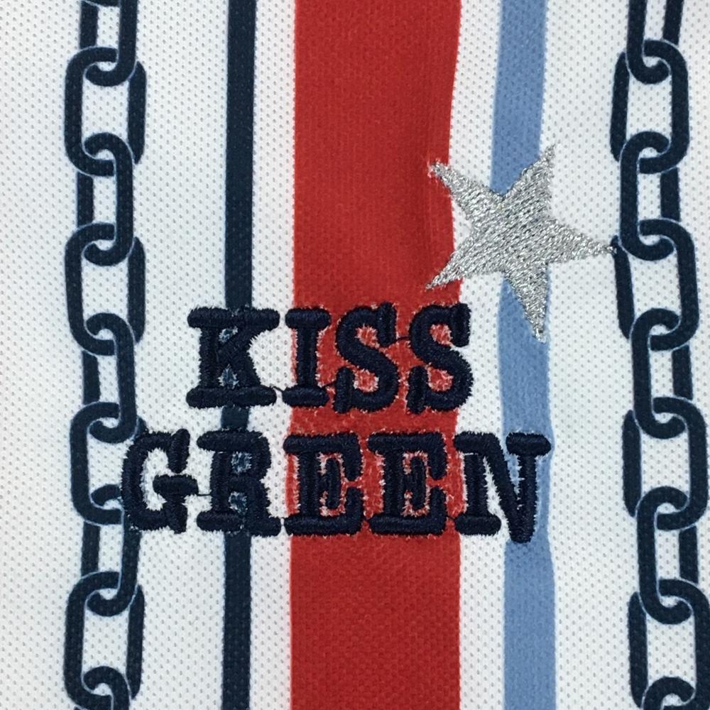 【美品】キスオンザグリーン 半袖ハイネックワンピース 白×ネイビー レディース 3(L) ゴルフウェア kiss on the green