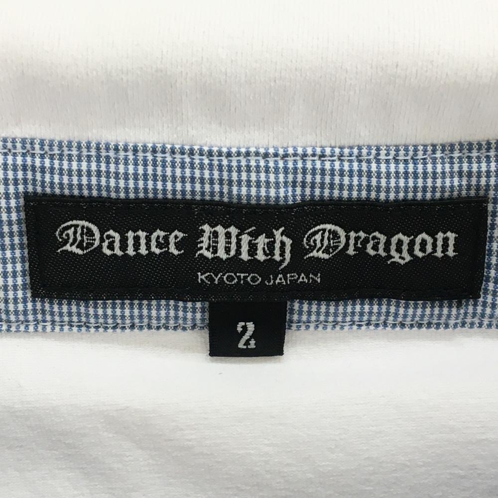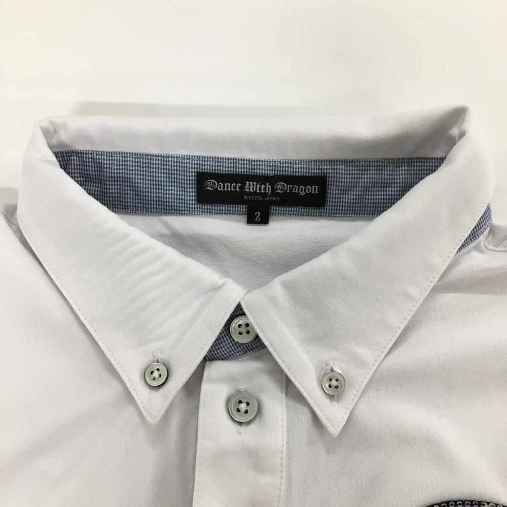 【美品】ダンスウィズドラゴン 半袖ポロシャツ 白 ワッペンライトブルー 襟先しわ メンズ 2(M) ゴルフウェア Dance With Dragon