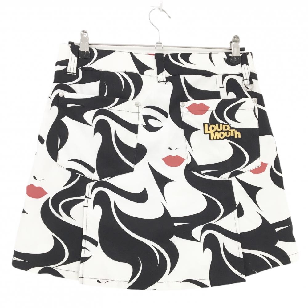 【美品】ラウドマウス スカート 白×黒 女性柄 内側パンツ レディース L ゴルフウェア LOUDMOUTH