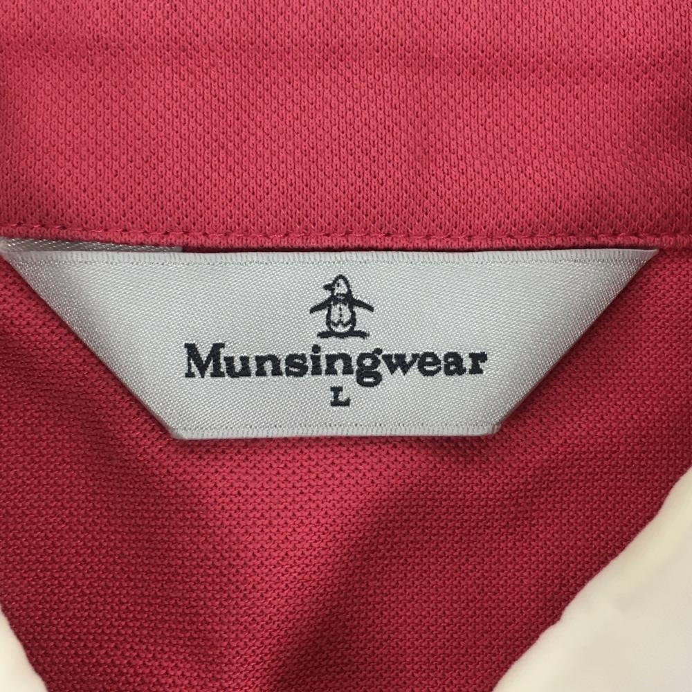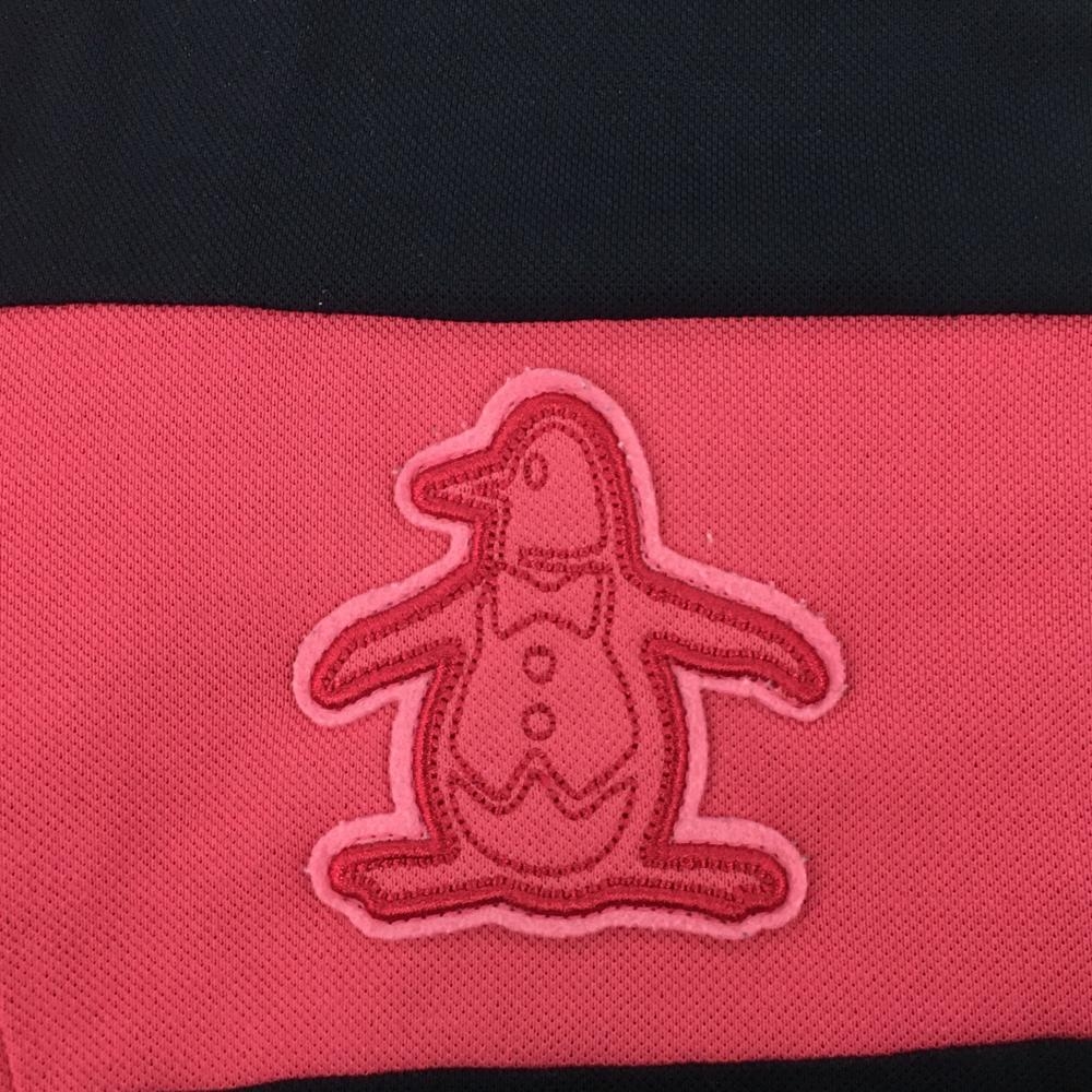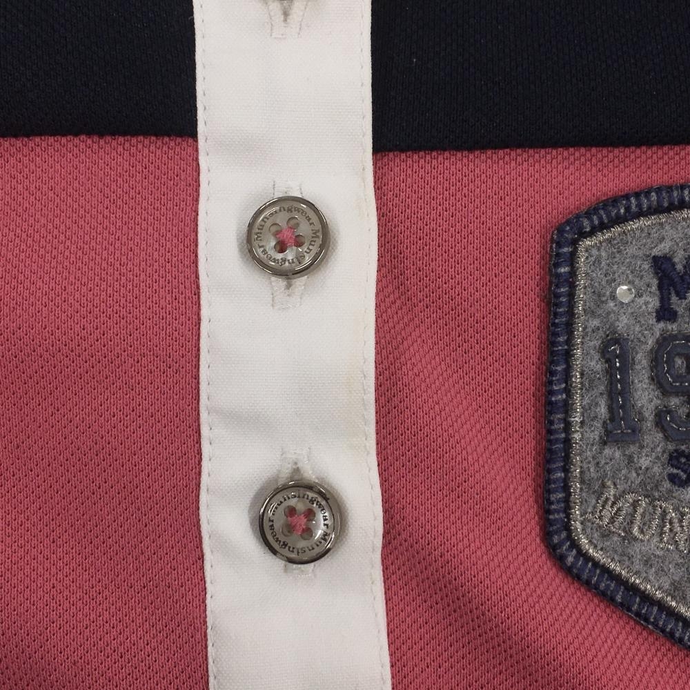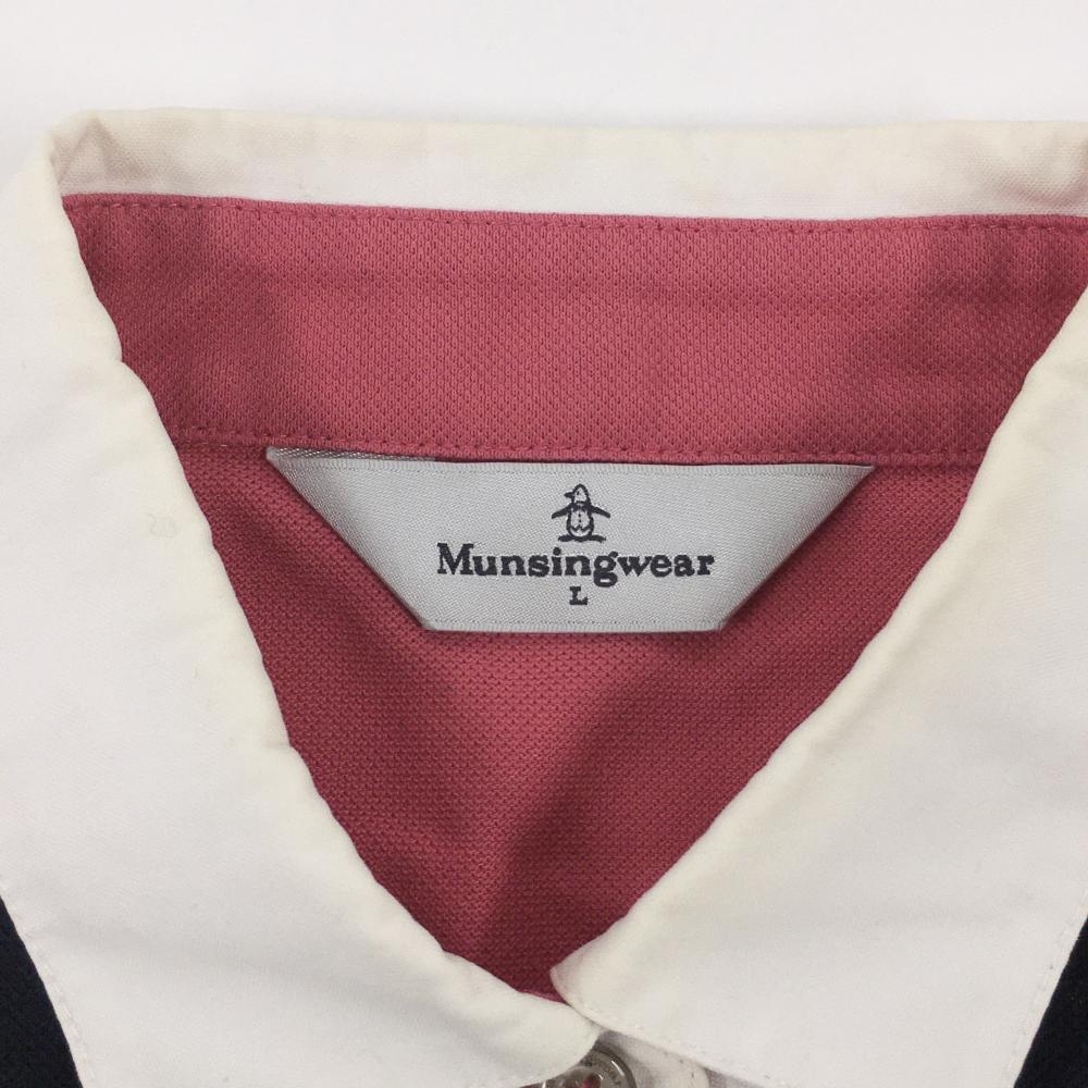 マンシングウェア 半袖ポロシャツ ピンク×ネイビー 前面ボーダー ワッペン レディース L ゴルフウェア Munsingwear