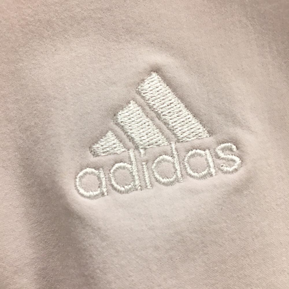 【美品】アディダス 半袖ハイネックシャツ パウダーピンク ストレッチ 肩3ライン レディース OT (XL) ゴルフウェア adidas