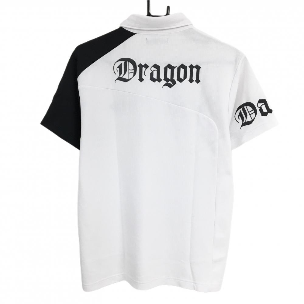 【超美品】ダンスウィズドラゴン 半袖ポロシャツ 白×黒 バイカラー ロゴプリント メンズ 3(L) ゴルフウェア Dance With Dragon