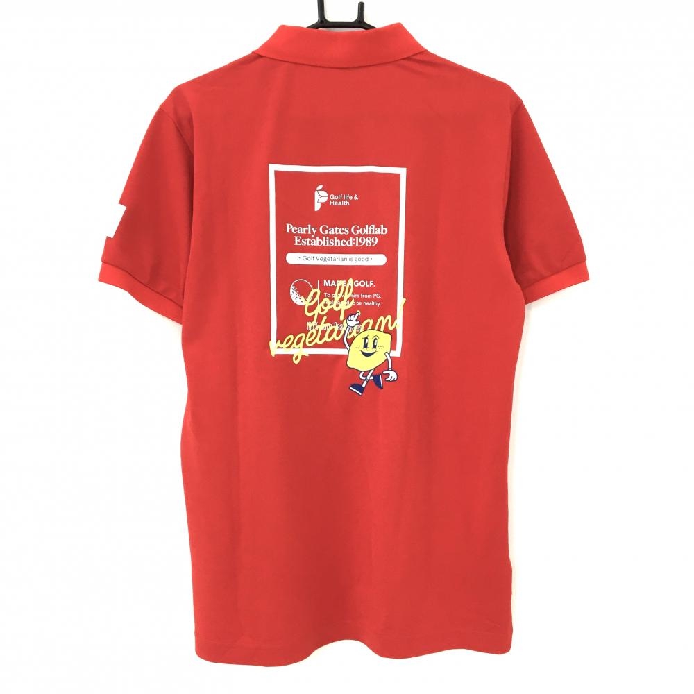 【超美品】パーリーゲイツ 半袖ポロシャツ レッド×ネイビー ロゴプリント メンズ 6(XL) ゴルフウェア 2025年モデル PEARLY GATES