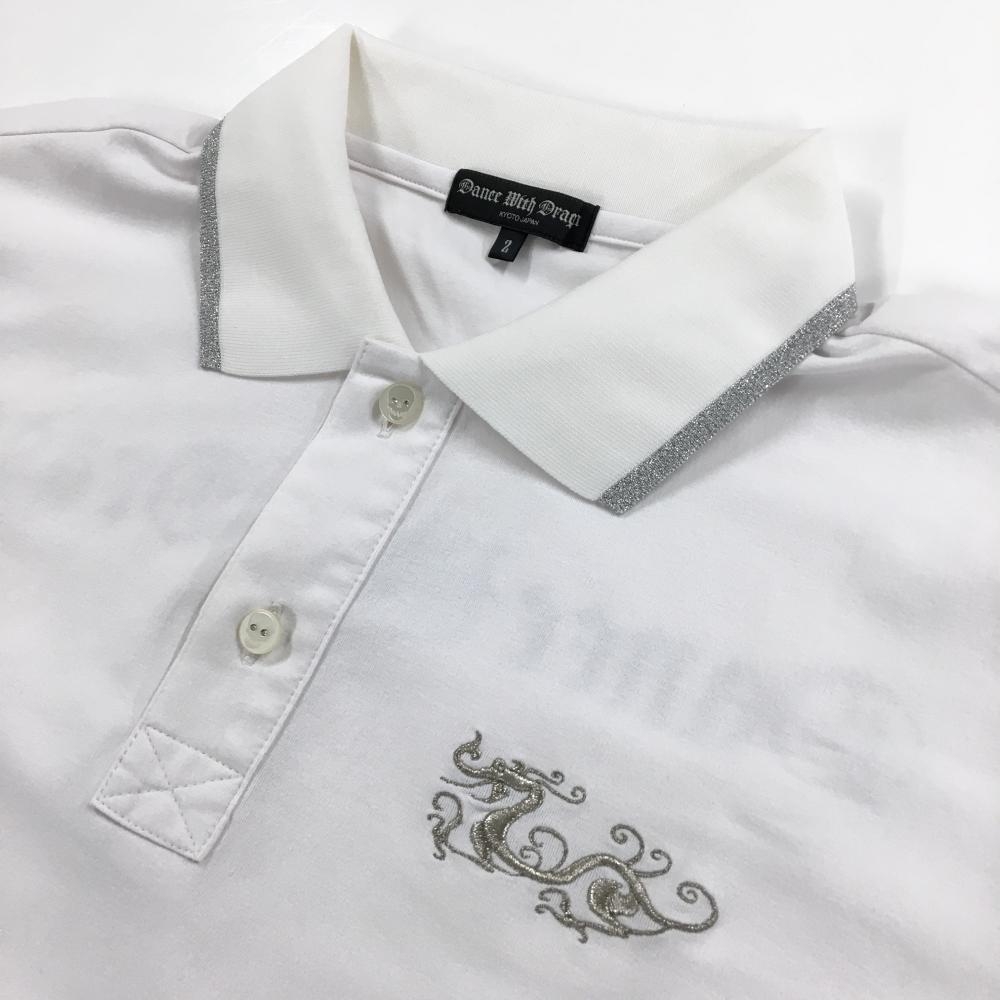 【超美品】ダンスウィズドラゴン 半袖ポロシャツ 白 刺しゅうシルバー メンズ 2(M) ゴルフウェア Dance With Dragon