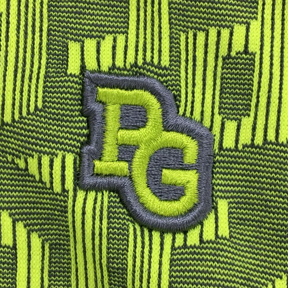【超美品】パーリーゲイツ 半袖ハイネックシャツ グレー系×グリーンイエロー系 メンズ 5(L) ゴルフウェア 2024年モデル PEARLY GATES