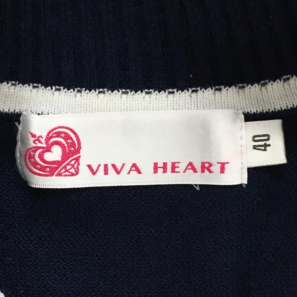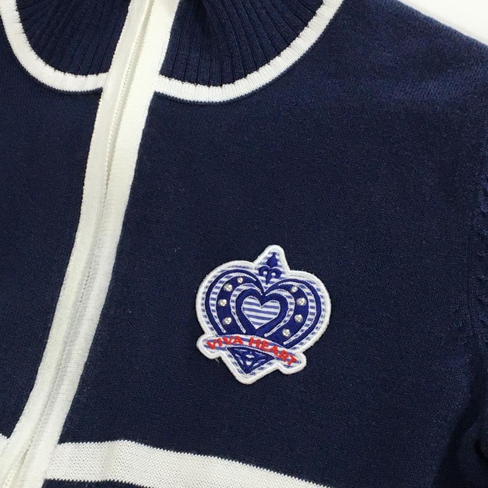 ビバハート ニットジャケット ネイビー×白 ボーダー 胸ロゴ レディース 40(M) ゴルフウェア VIVA HEART