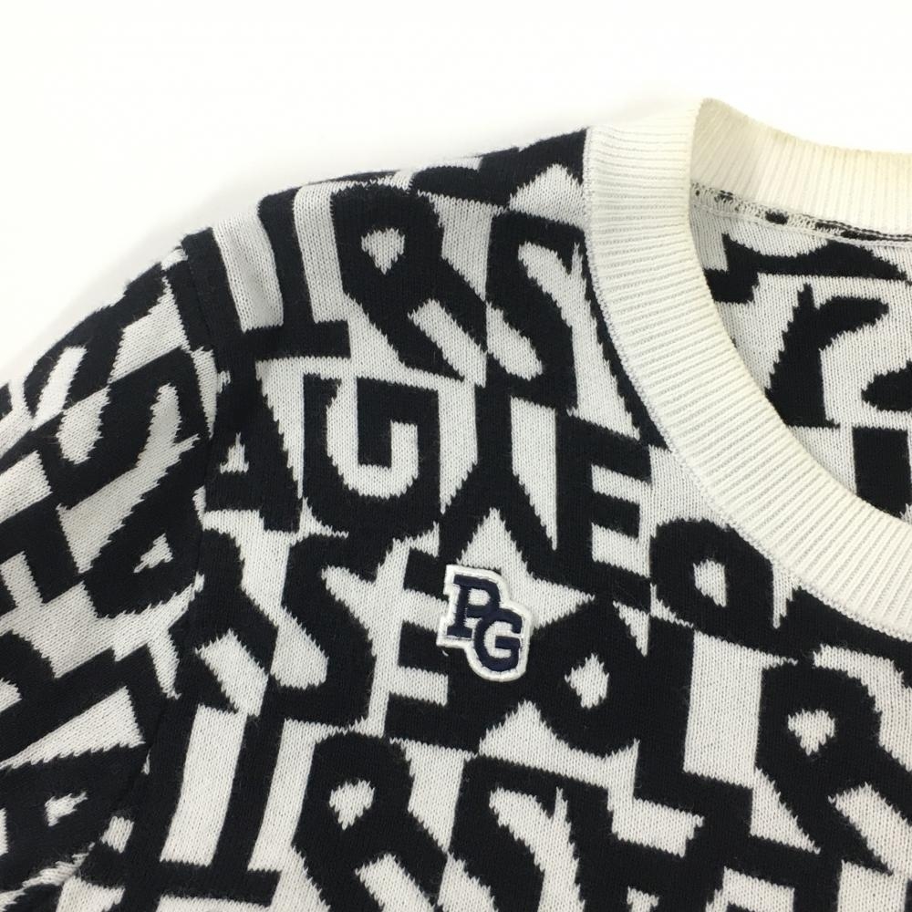 パーリーゲイツ セーター 白×黒 英字総柄 ニット コットン100% レディース 0(S) ゴルフウェア 2024年モデル PEARLY GATES