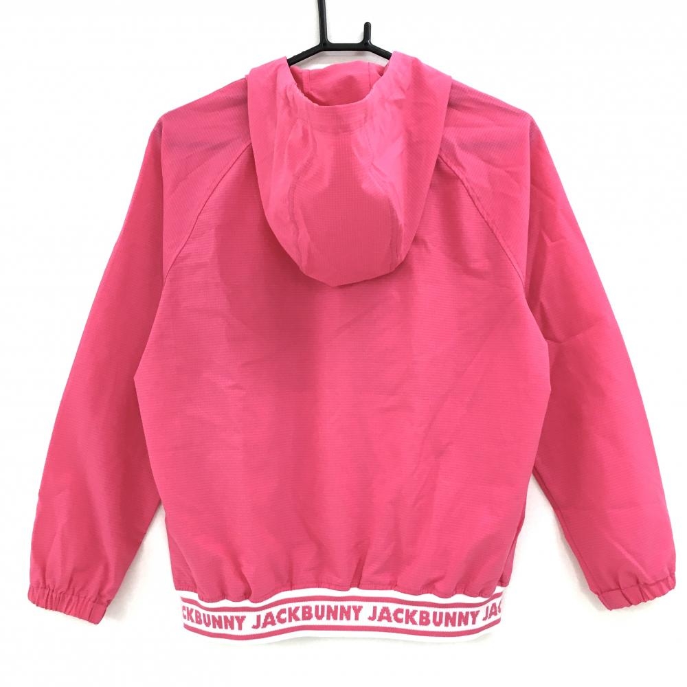 【美品】ジャックバニー ジップパーカー ピンク×白 裾ロゴ レディース 0 ゴルフウェア Jack Bunny