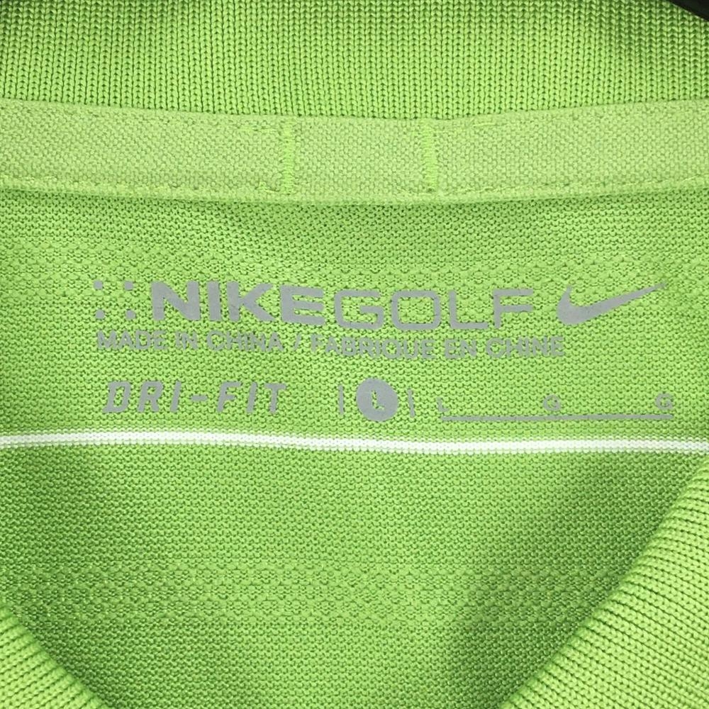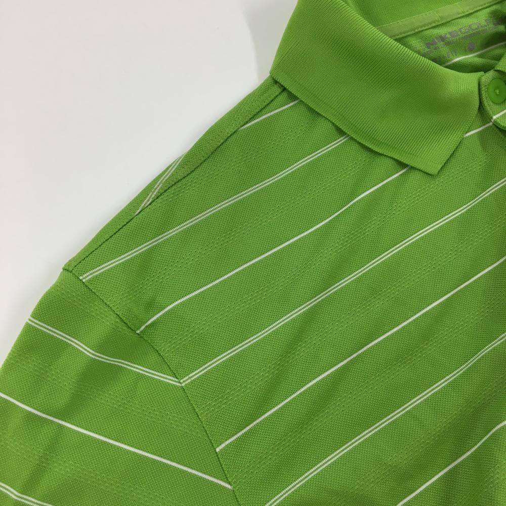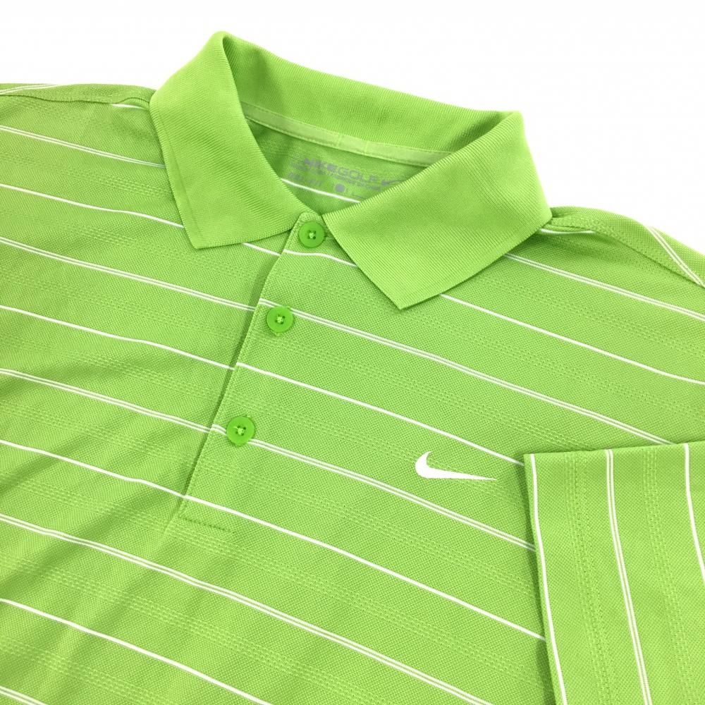 【美品】ナイキゴルフ 半袖ポロシャツ ライトグリーン×白 ボーダー ロゴ刺しゅう DRI-FIT メンズ L ゴルフウェア NIKE