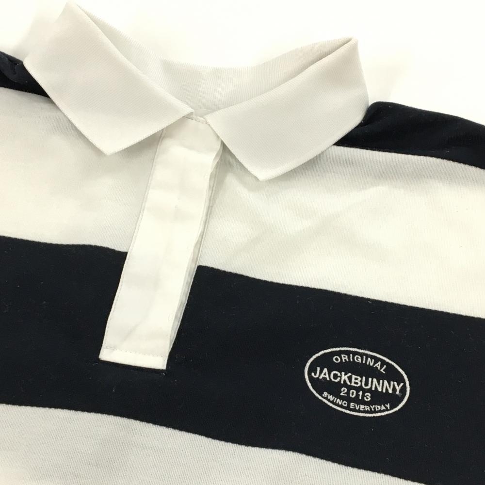 ジャックバニー 半袖ポロシャツ 白×ネイビー ボーダー レディース 2(L) ゴルフウェア 2025年モデル Jack Bunny