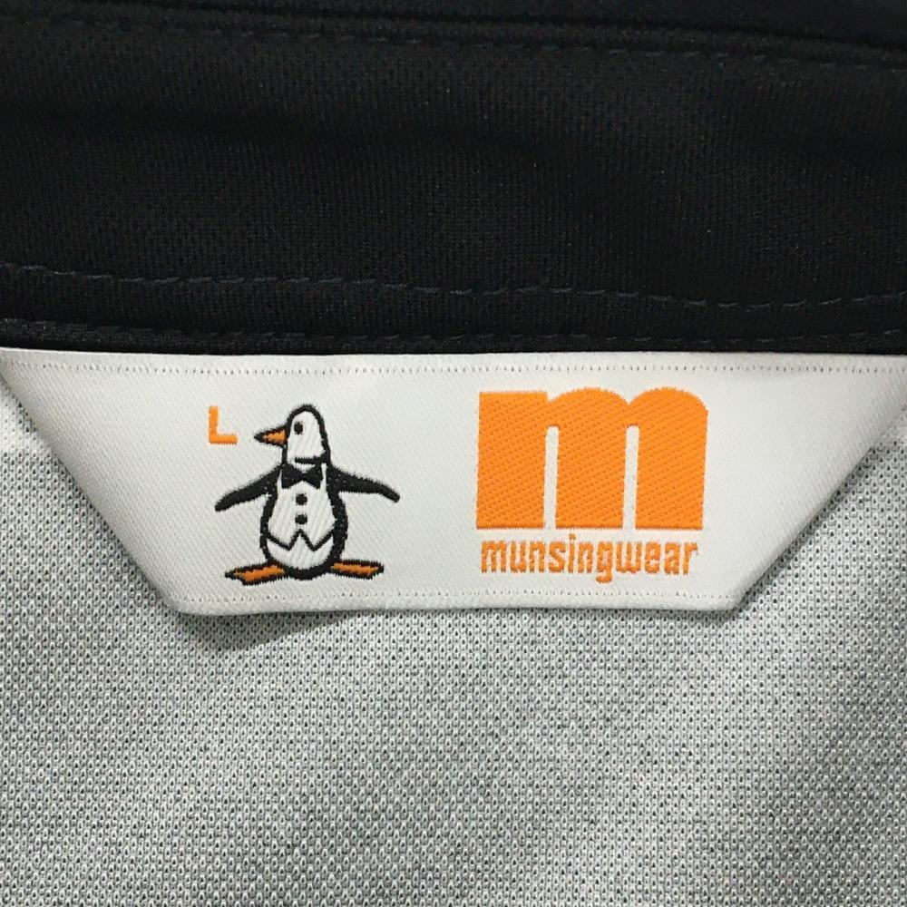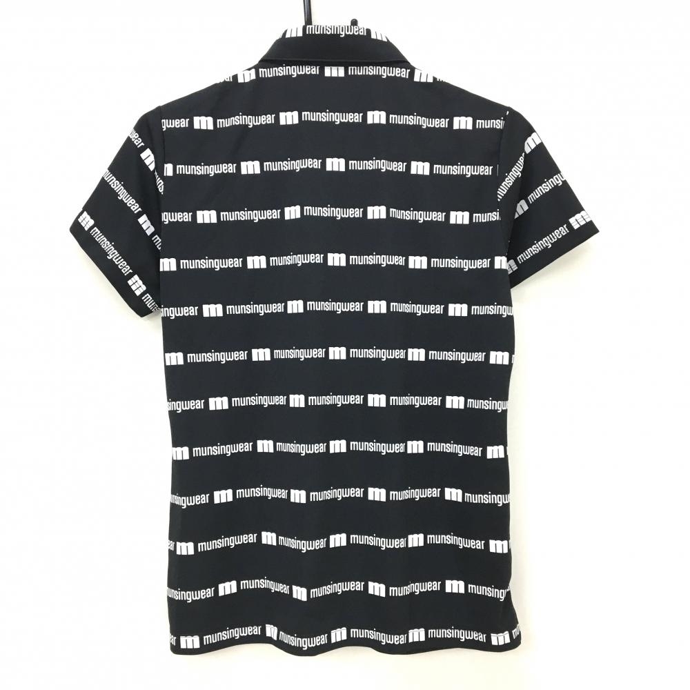 【超美品】マンシングウェア 半袖ポロシャツ 黒×白 ロゴボーダー ロゴ刺しゅう レディース L ゴルフウェア Munsingwear
