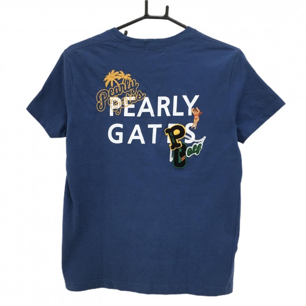 パーリーゲイツ Tシャツ ネイビー 背面ロゴ ヤシの木 女性 レディース 0(S) ゴルフウェア PEARLY GATES