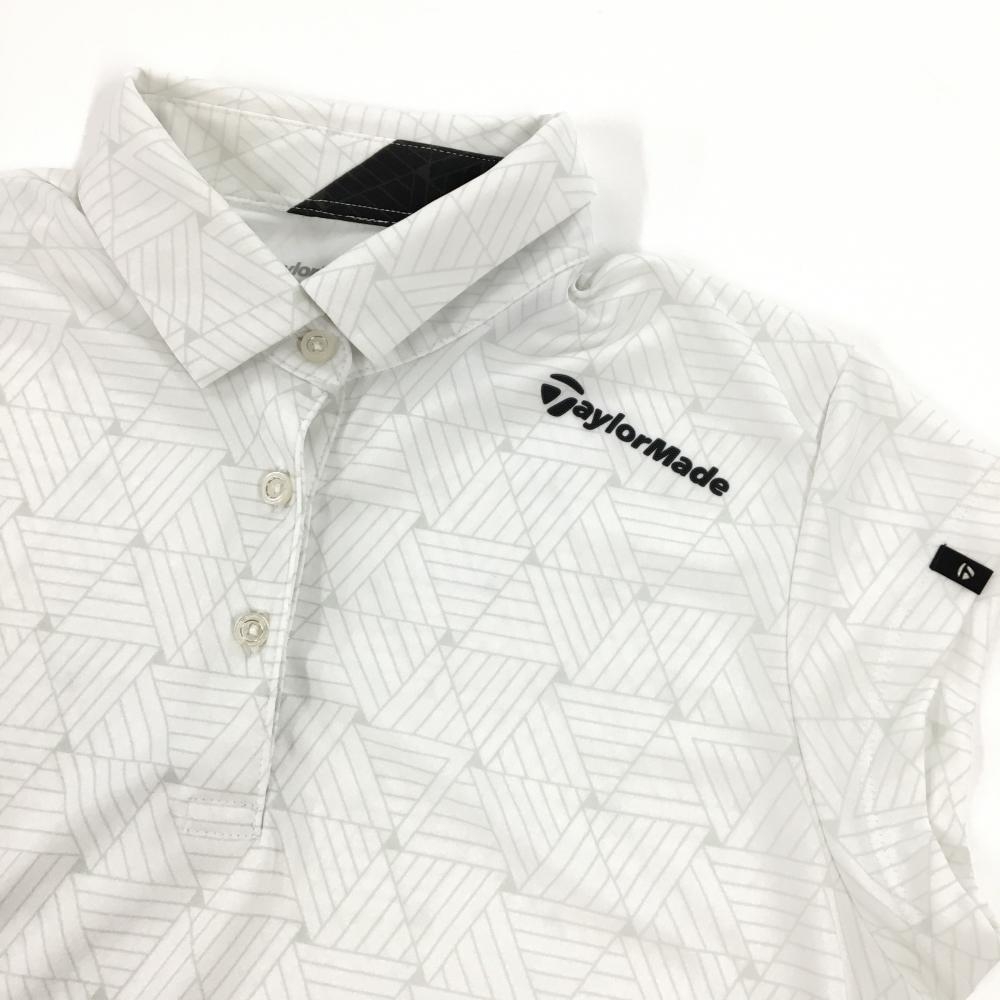 【超美品】テーラーメイド 半袖ポロシャツ 白×ライトグレー 総柄 肩下ロゴ レディース M ゴルフウェア TaylorMade