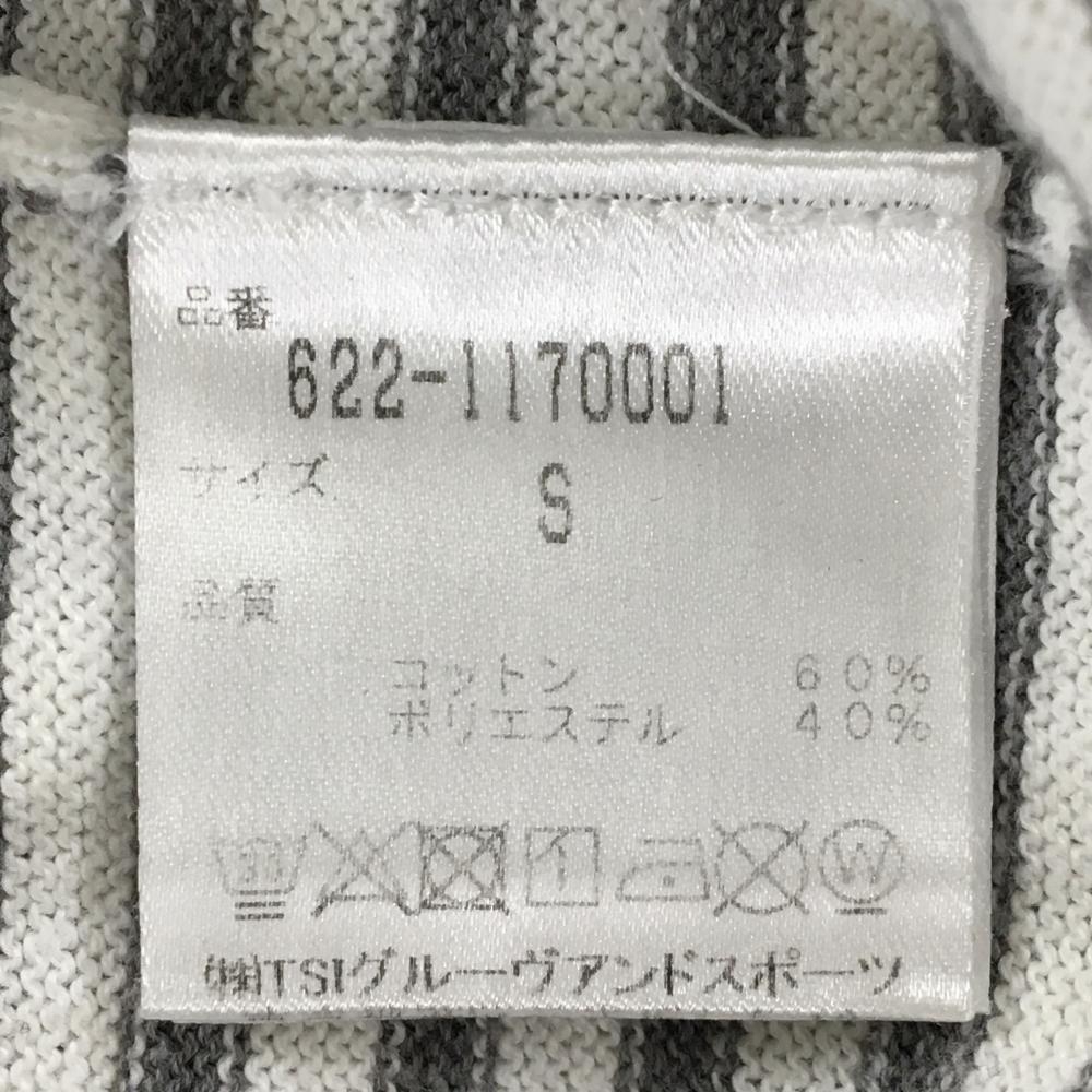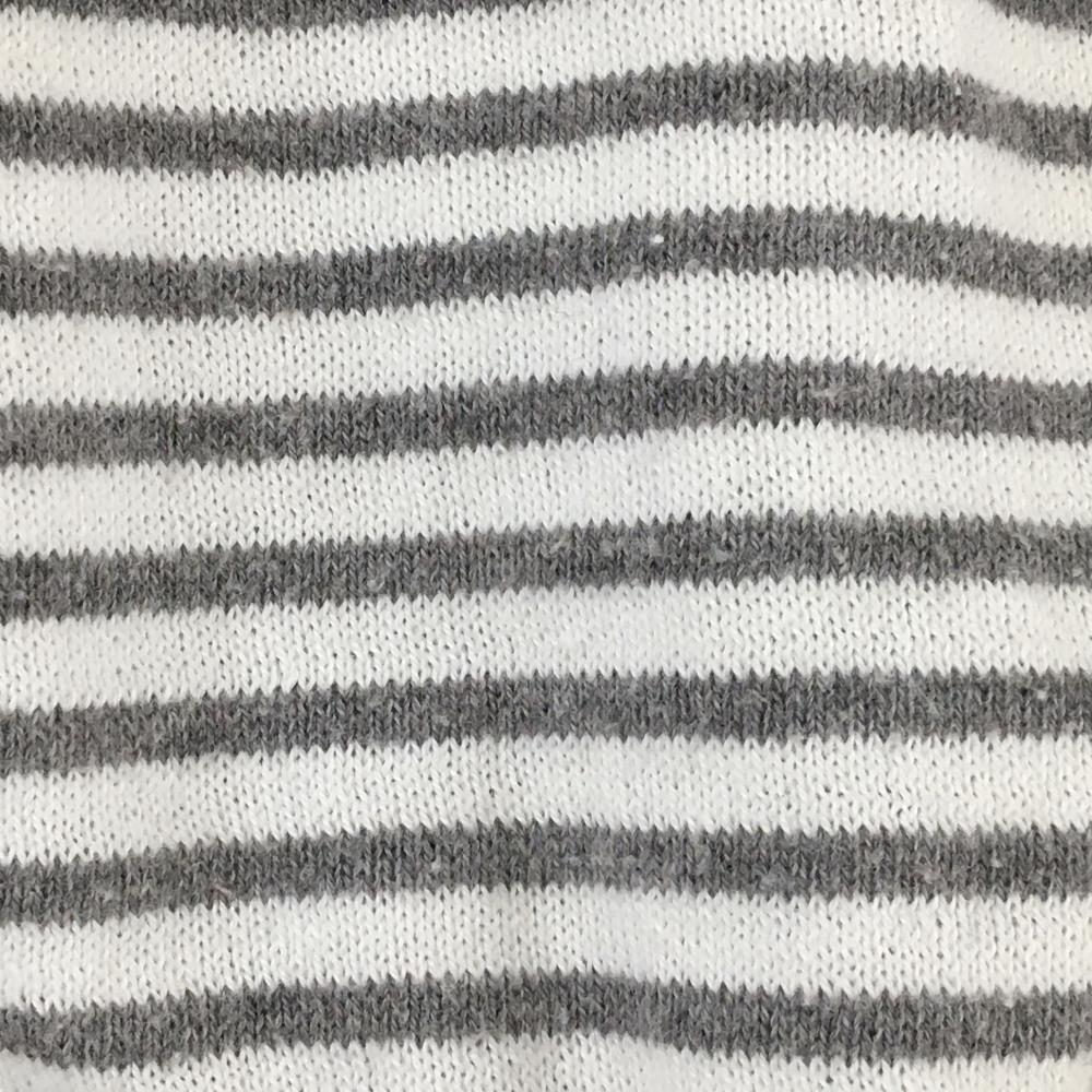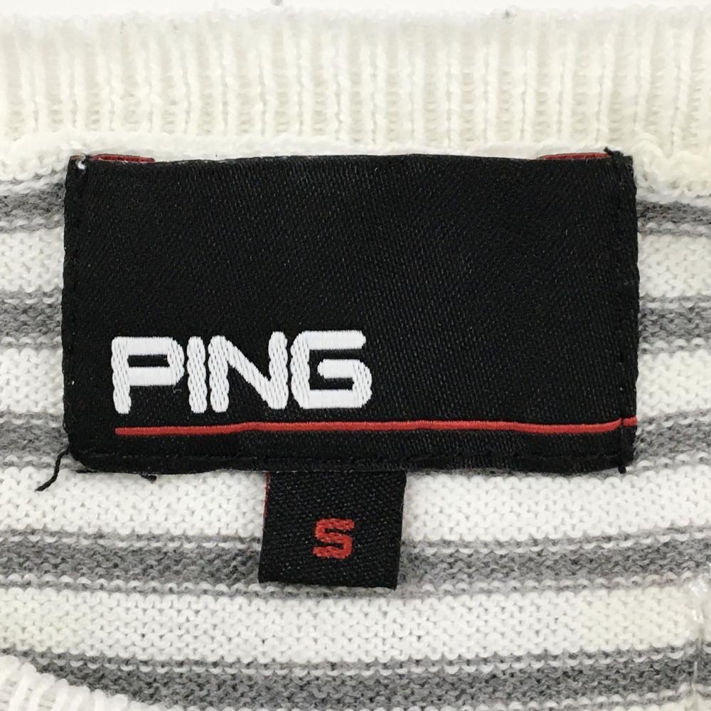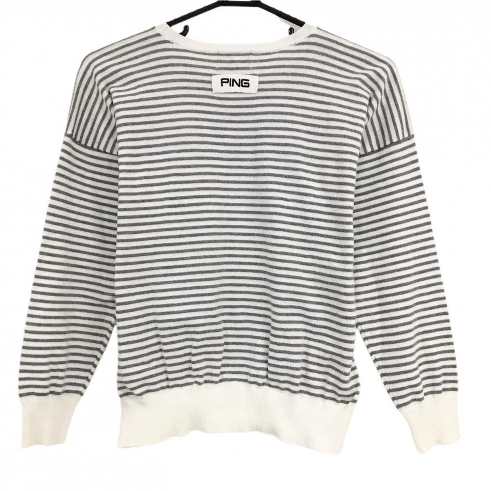 ピン セーター 白×グレー ボーダー ニット 一部透かし編み コットン混 レディース S ゴルフウェア PING