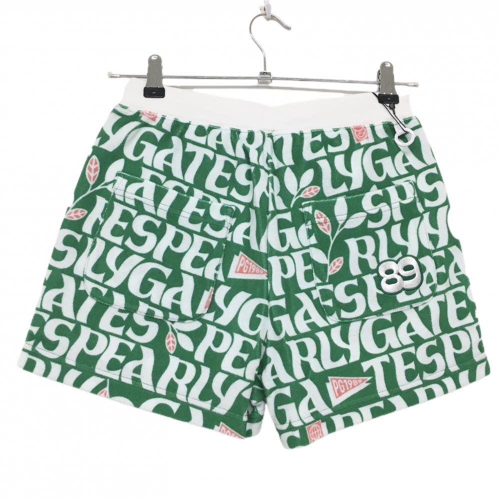 【新品】パーリーゲイツ ショートパンツ グリーン×白 ロゴ総柄 パイル地 ウエストゴム 調節紐 レディース 0(S) ゴルフウェア PEARLY GATES
