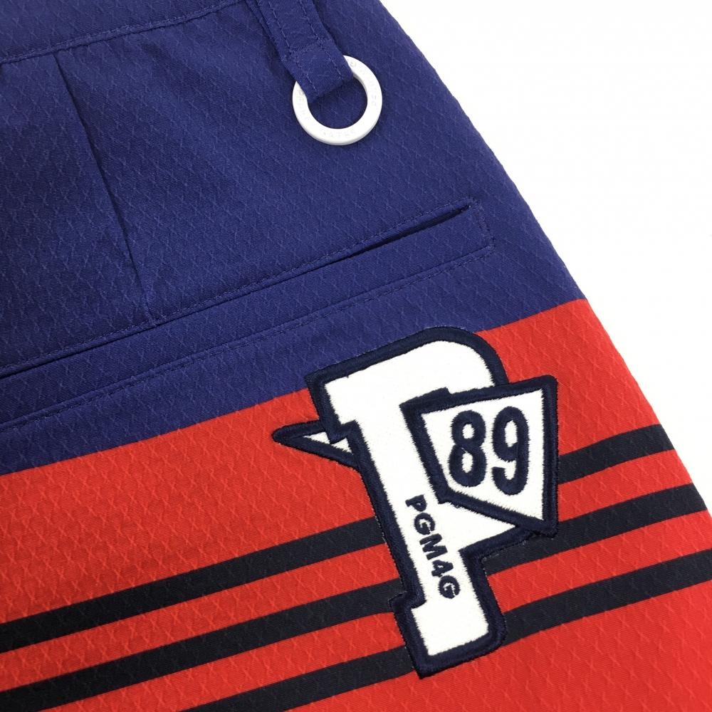 【新品】パーリーゲイツ スカート ブルー×レッド ボーダー調 織生地 フロントロゴ レディース 00(XS) ゴルフウェア PEARLY GATES