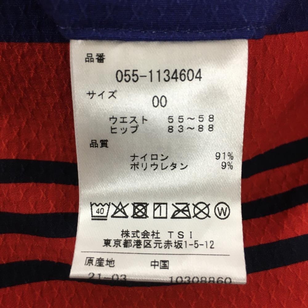 【新品】パーリーゲイツ スカート ブルー×レッド ボーダー調 織生地 フロントロゴ レディース 00(XS) ゴルフウェア PEARLY GATES