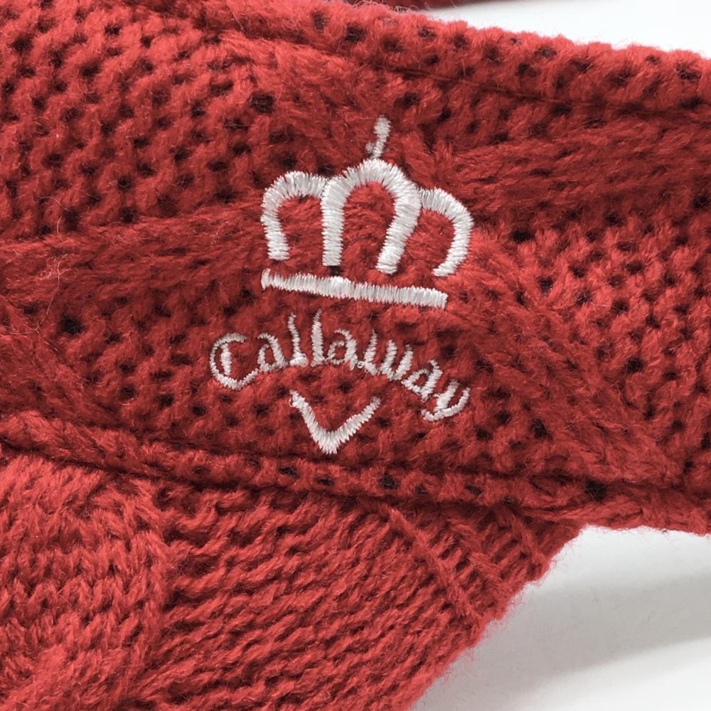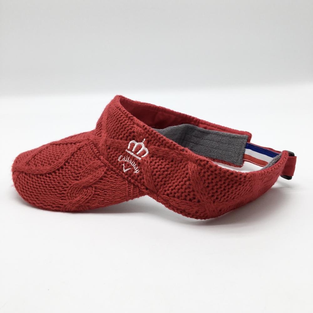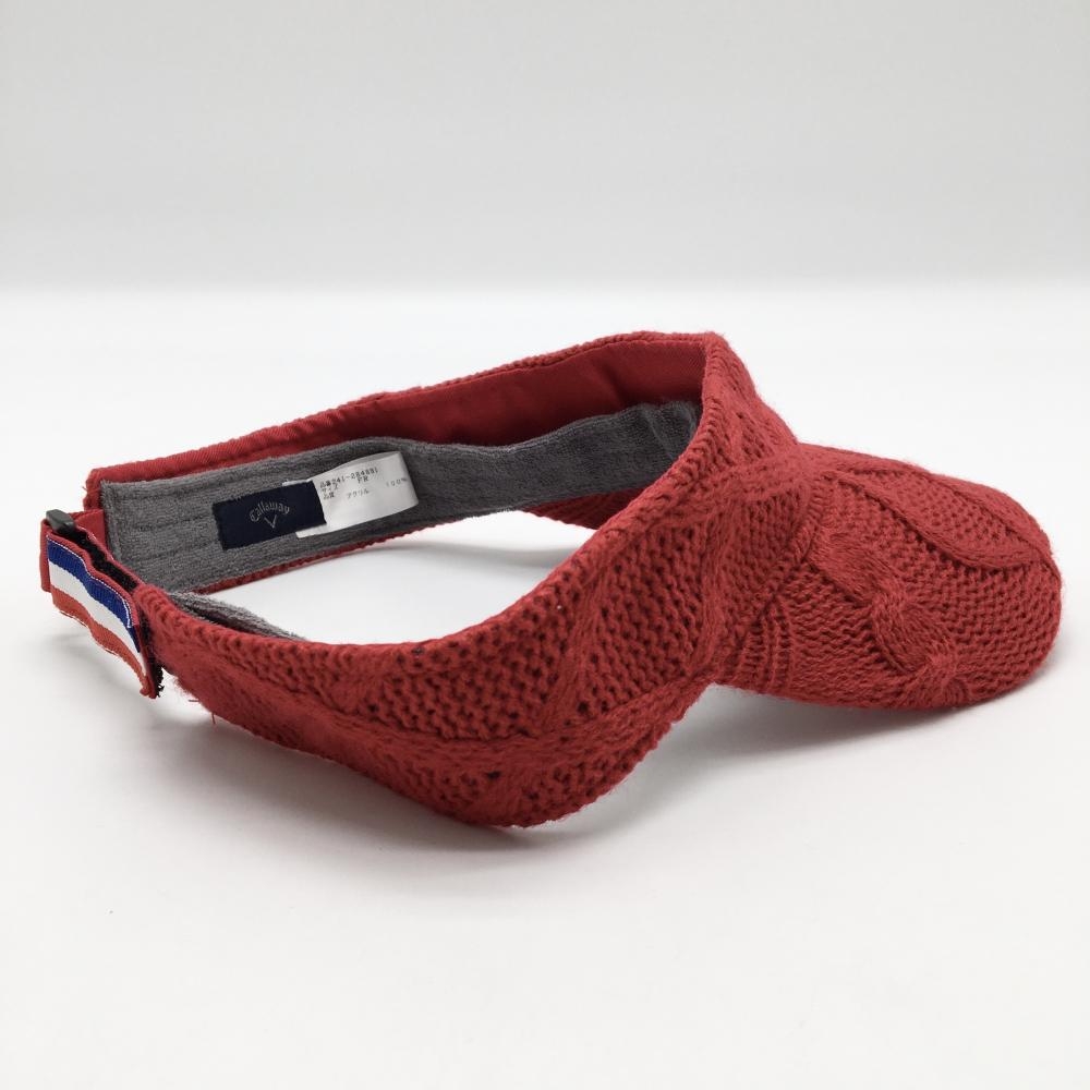 【超美品】キャロウェイ ニットサンバイザー レッド アクリル100% 内側パイル地 FR ゴルフウェア Callaway
