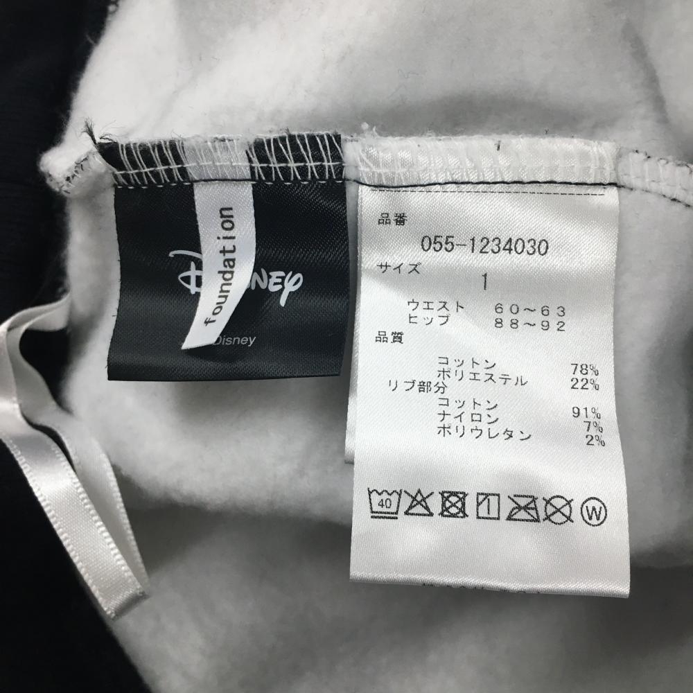 【美品】パーリーゲイツ×Disney スウェットスカート 黒×白 ミッキーの手総柄 裏起毛 レディース 1(M) ゴルフウェア PEARLY GATES