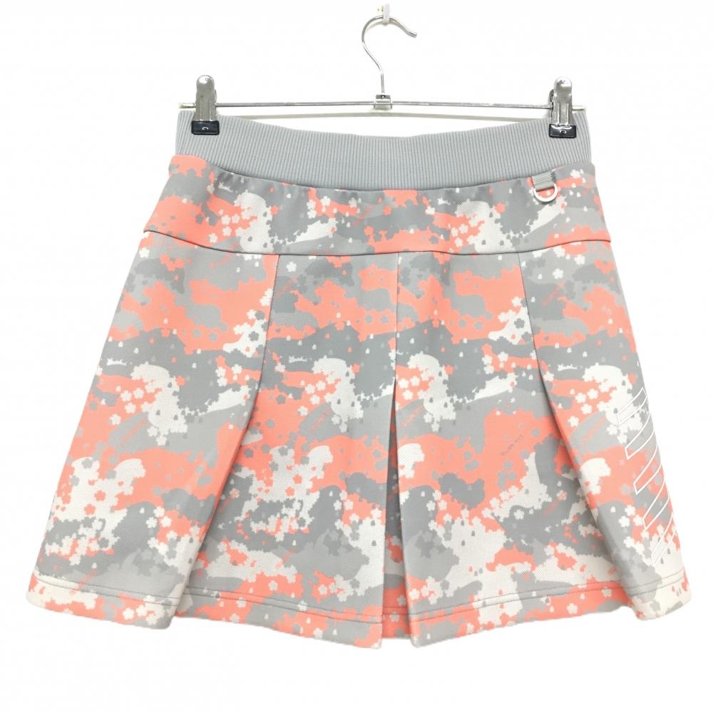 【美品】ニューバランスゴルフ スカート ライトグレー×オレンジ 総柄 レディース 1(M) ゴルフウェア New Balance