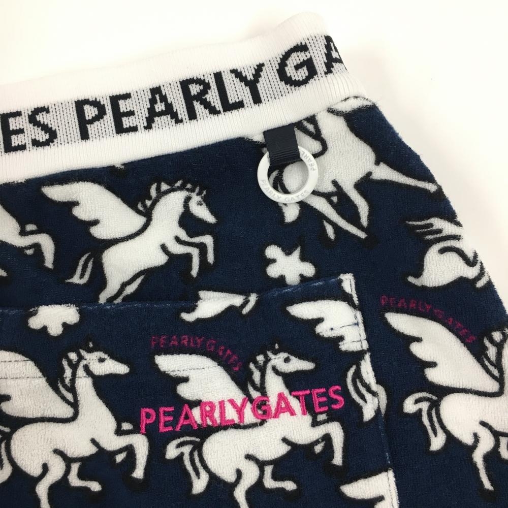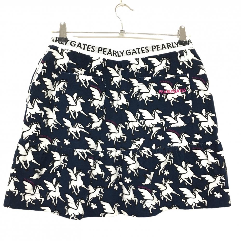 【新品】パーリーゲイツ スカート ネイビー×白 ペガサス柄 パイル地 ウエストゴム レディース 1(M) ゴルフウェア PEARLY GATES