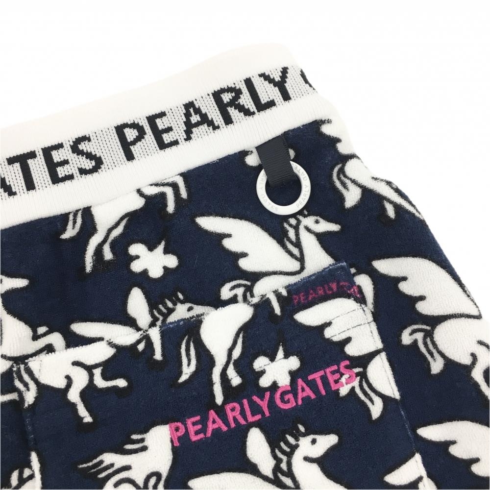 【新品】パーリーゲイツ スカート ネイビー×白 ペガサス柄 パイル地 ウエストゴム レディース 0(S) ゴルフウェア PEARLY GATES
