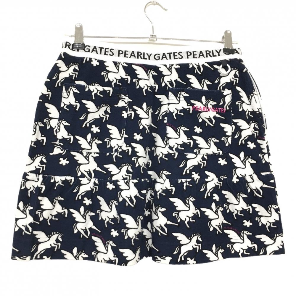 【新品】パーリーゲイツ スカート ネイビー×白 ペガサス柄 パイル地 ウエストゴム レディース 1(M) ゴルフウェア PEARLY GATES