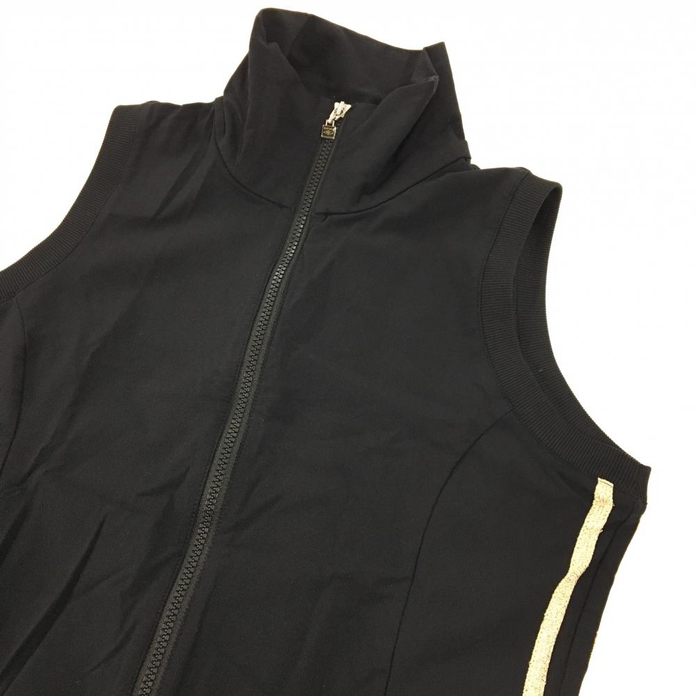 【美品】コルウィン ノースリーブワンピース 黒×ゴールド サイドラインハイネック ジップ レディース L ゴルフウェア Kolwin