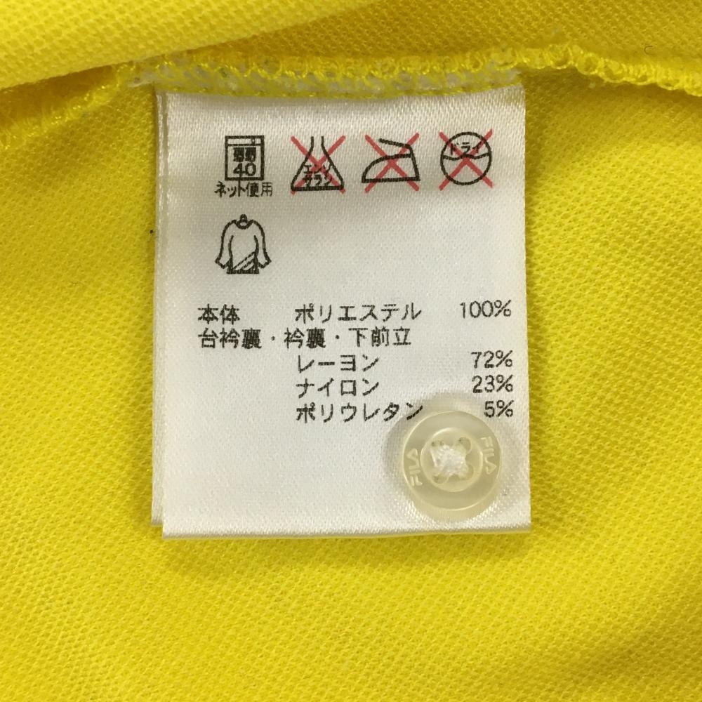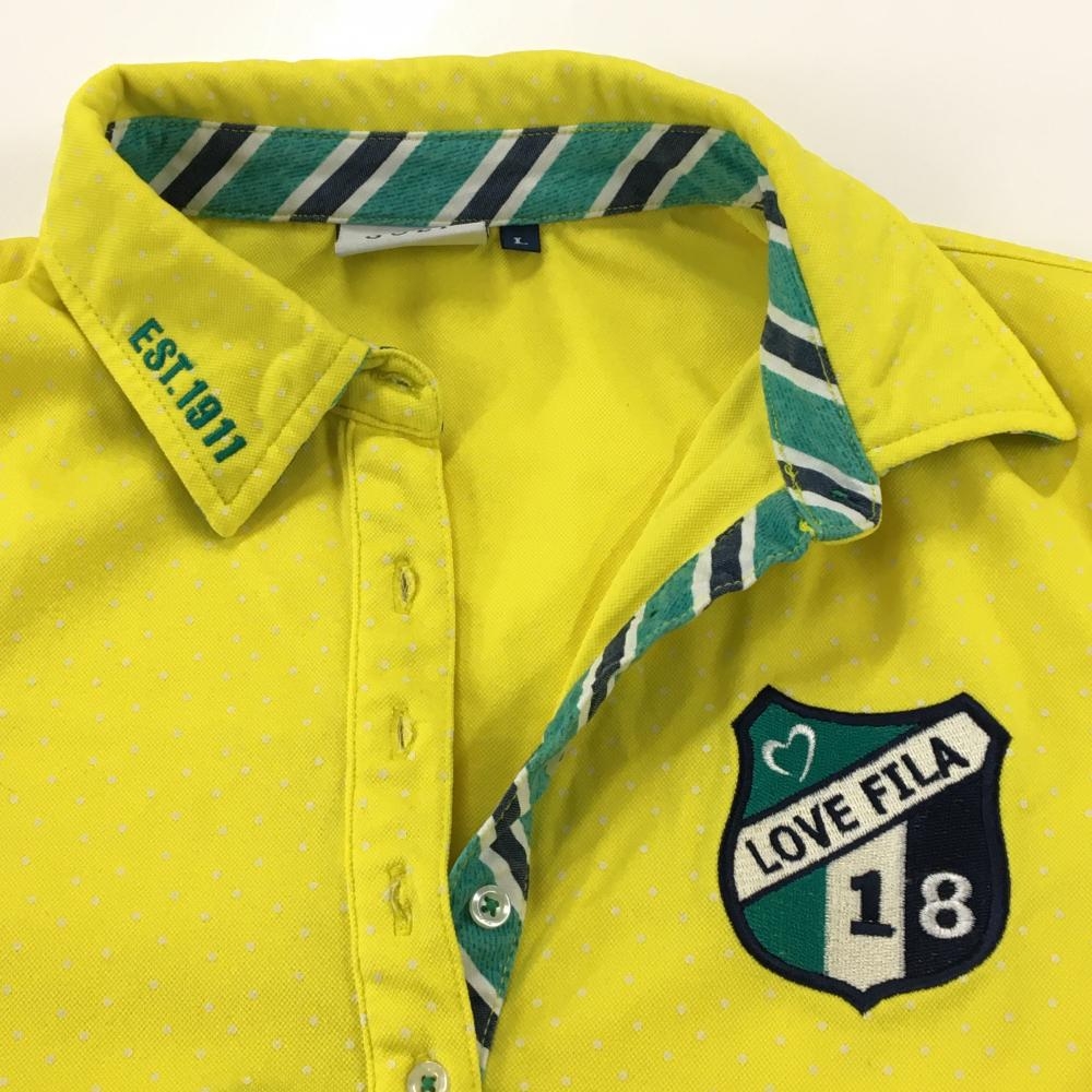 【超美品】フィラゴルフ 半袖ポロシャツ イエロー×白 ドット 襟裏・前立て斜めストライプ レディース L ゴルフウェア FILA GOLF