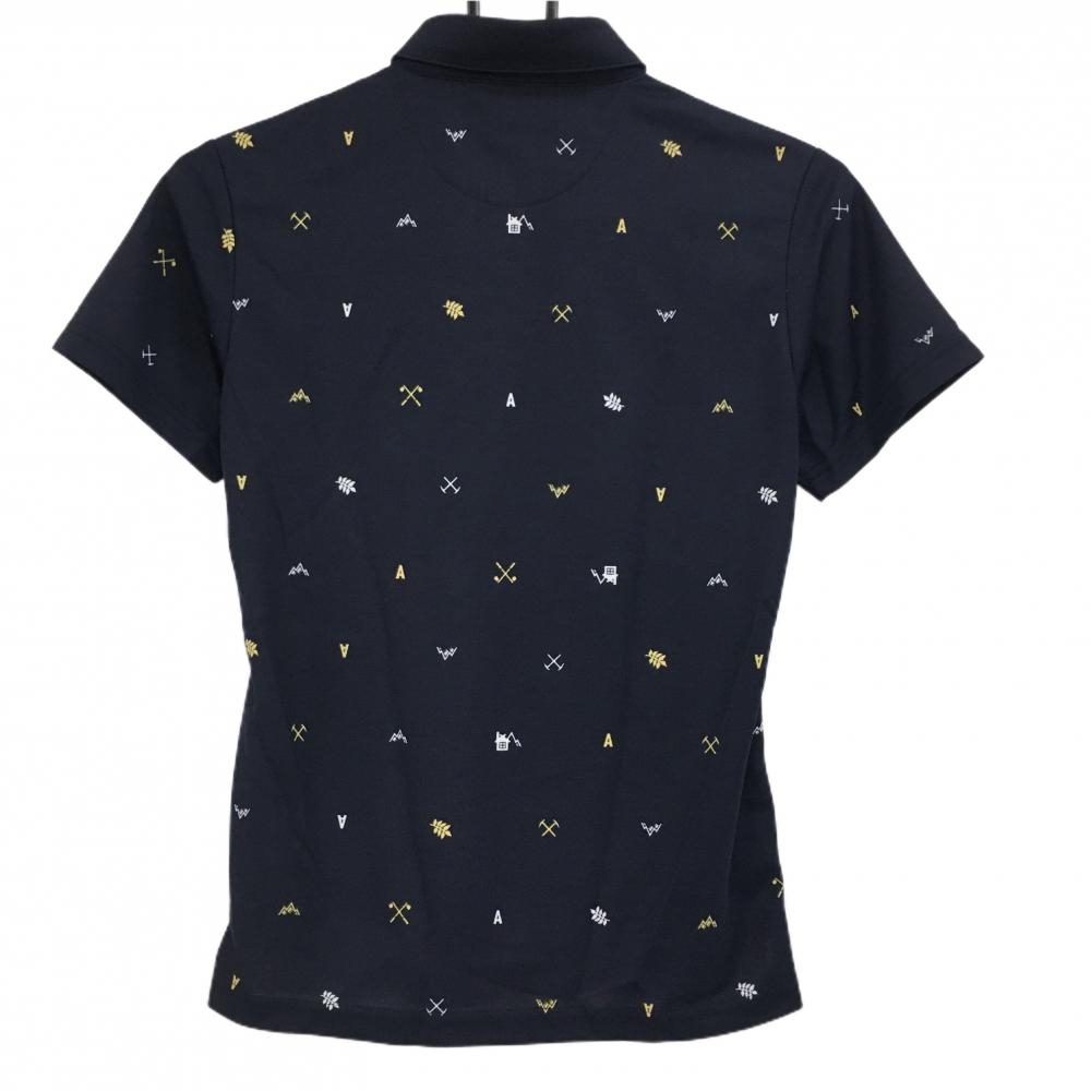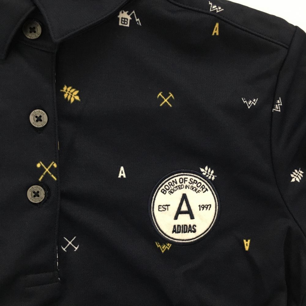 【超美品】アディダス 半袖ポロシャツ ネイビー×白×イエロー 総柄 レディース M/M ゴルフウェア adidas