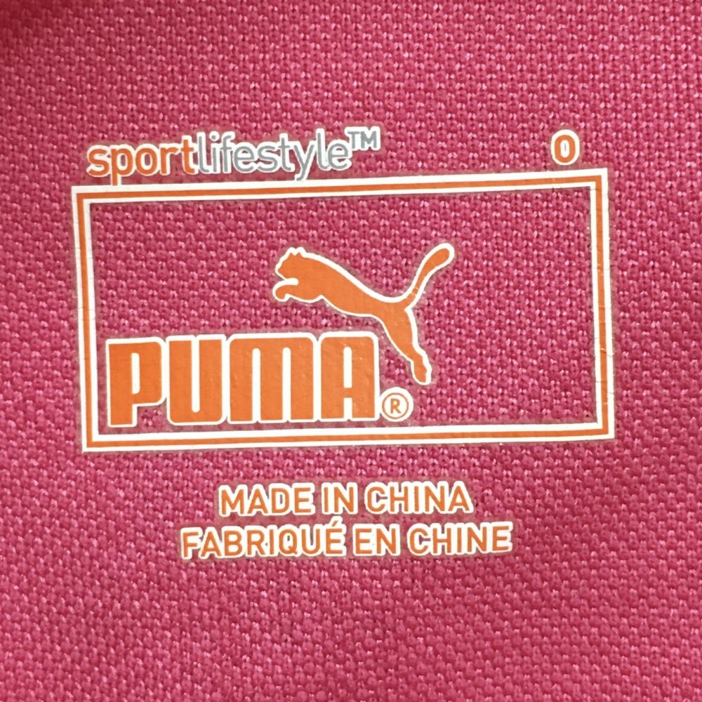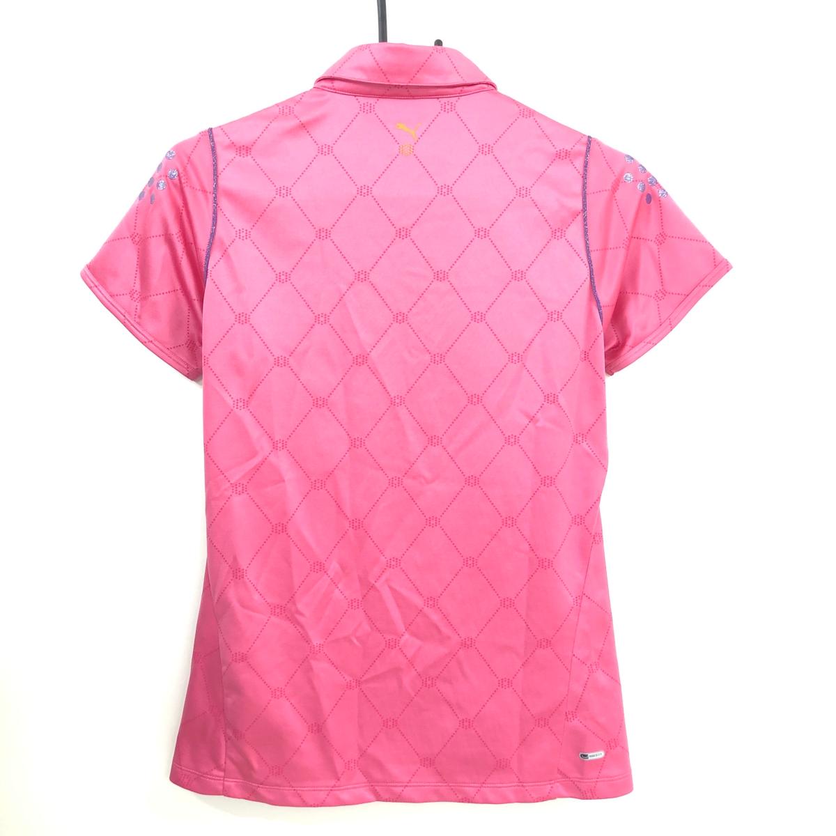 【美品】プーマ 半袖ポロシャツ ピンク×パープル 地模様 パイピングラインラメ ボタンダウン レディース O(XL) ゴルフウェア PUMA