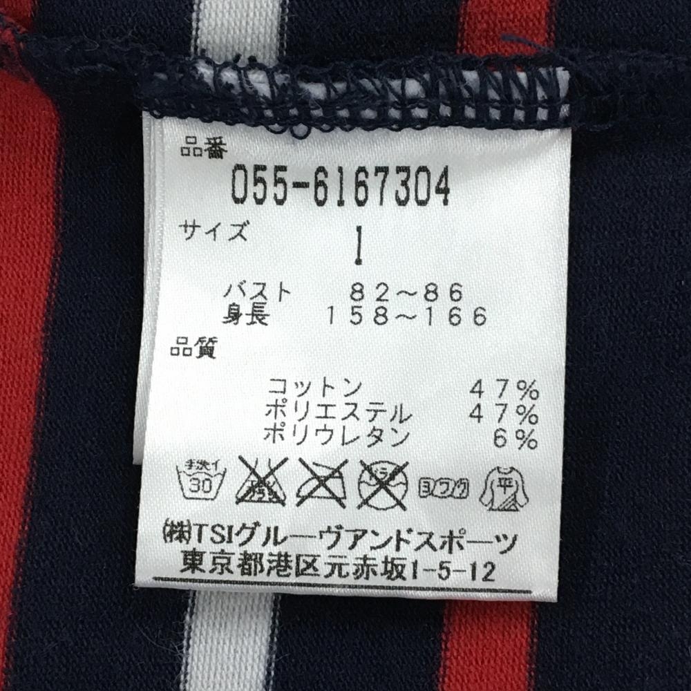 パーリーゲイツ 半袖ハイネックシャツ ネイビー×白×レッド ボーダー レディース 1(M) ゴルフウェア PEARLY GATES